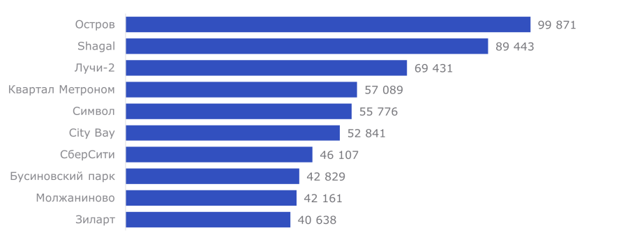 ТОП-10 продаваемых проектов в 2025 г., кв. м