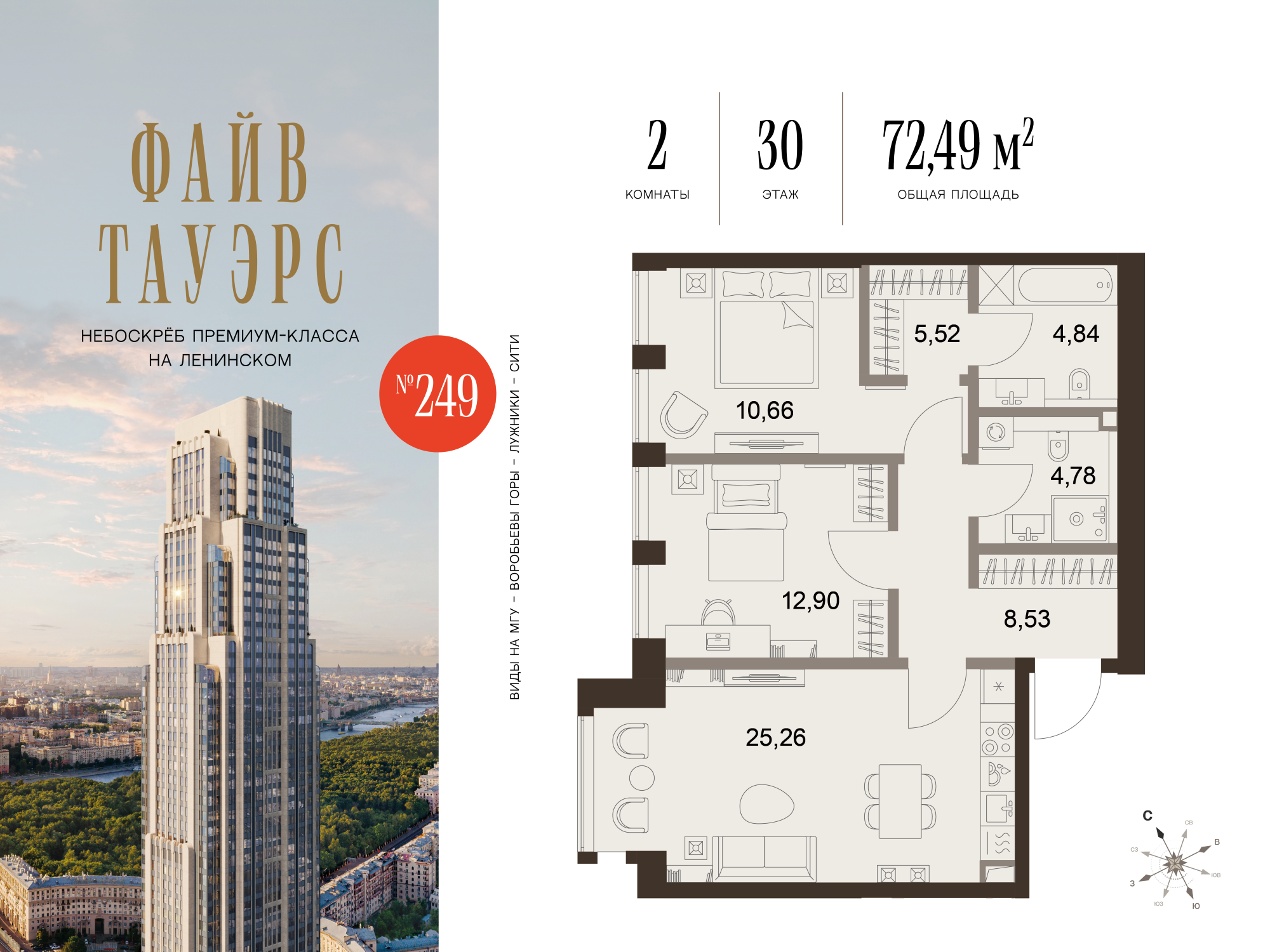 Квартира 72,49 м² - 30 этаж