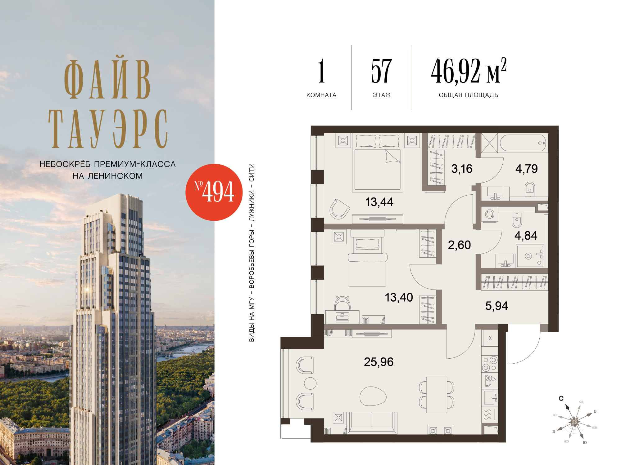 Квартира 74,13 м² - 57 этаж