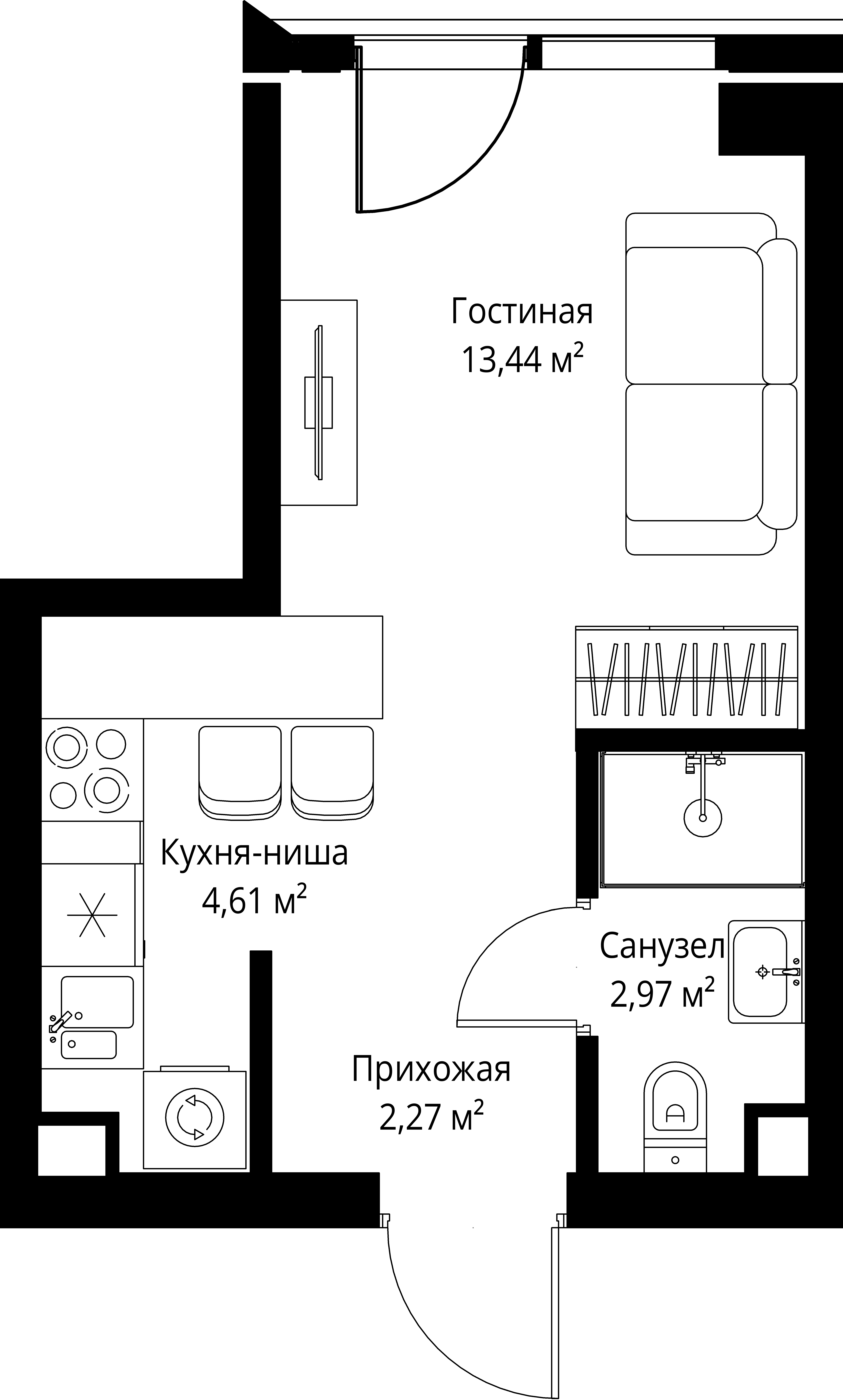 Площадь 23,34 м2