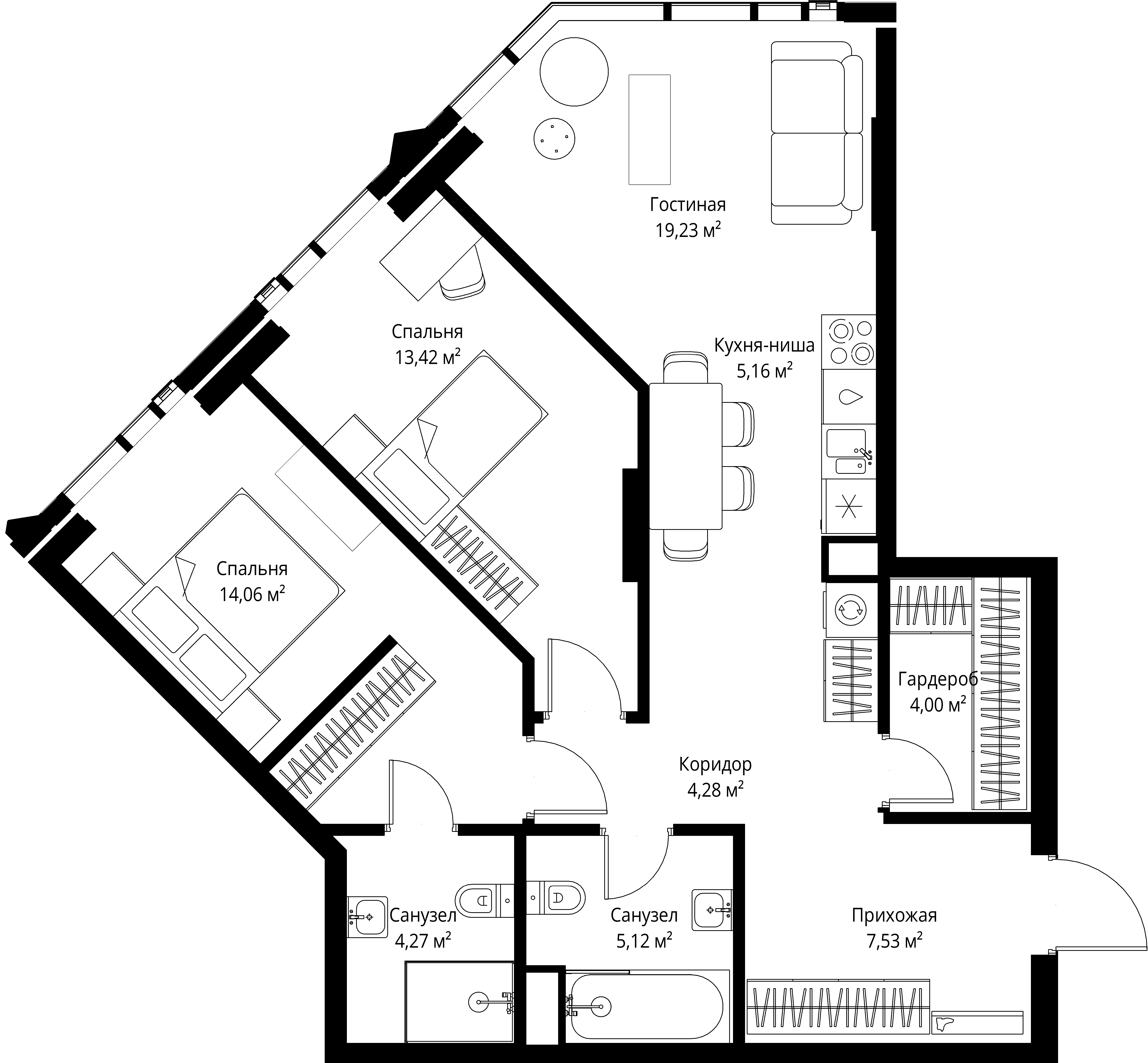 Квартира 77,07 м² - 42 этаж