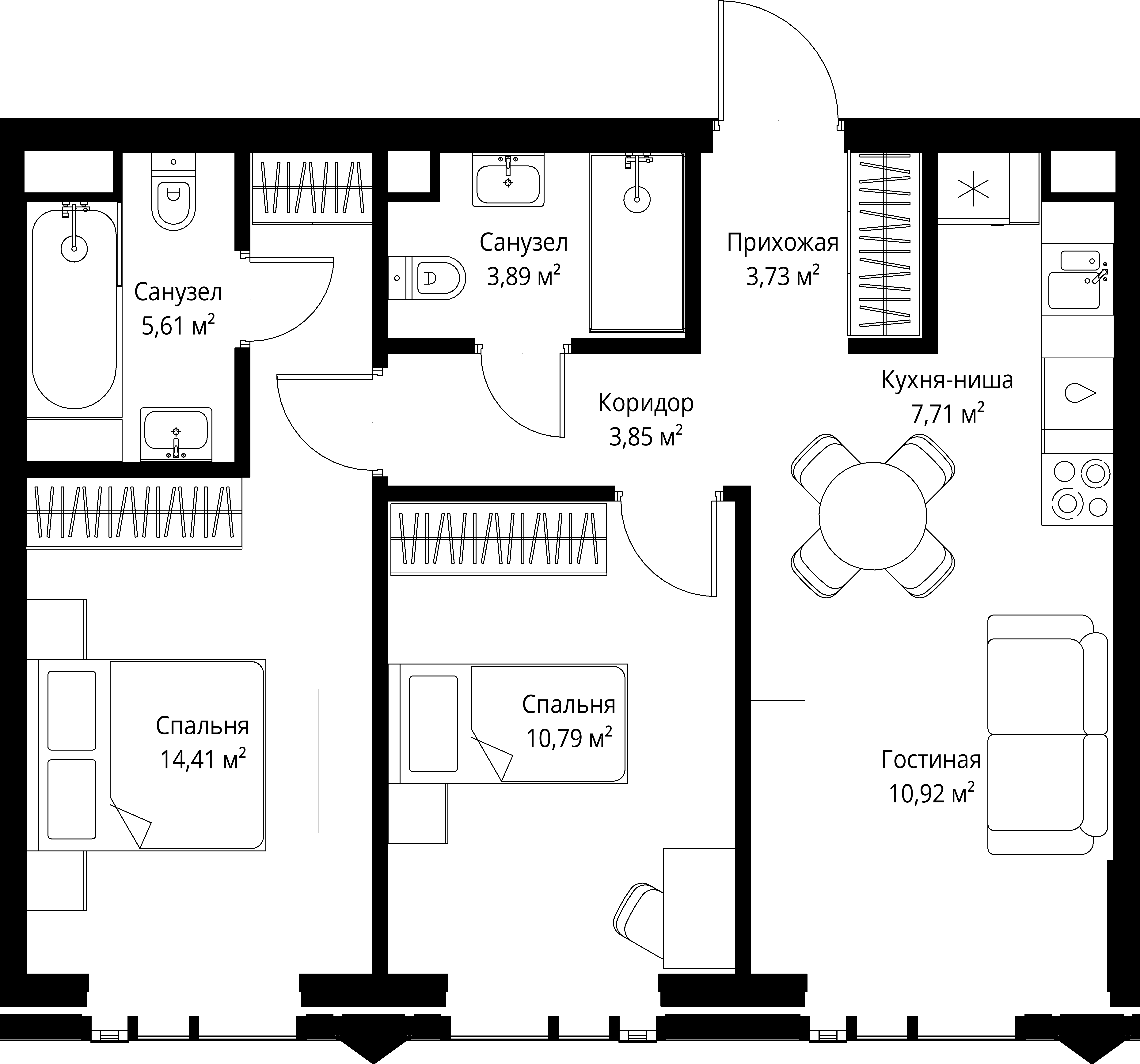 Площадь 60,98 м2