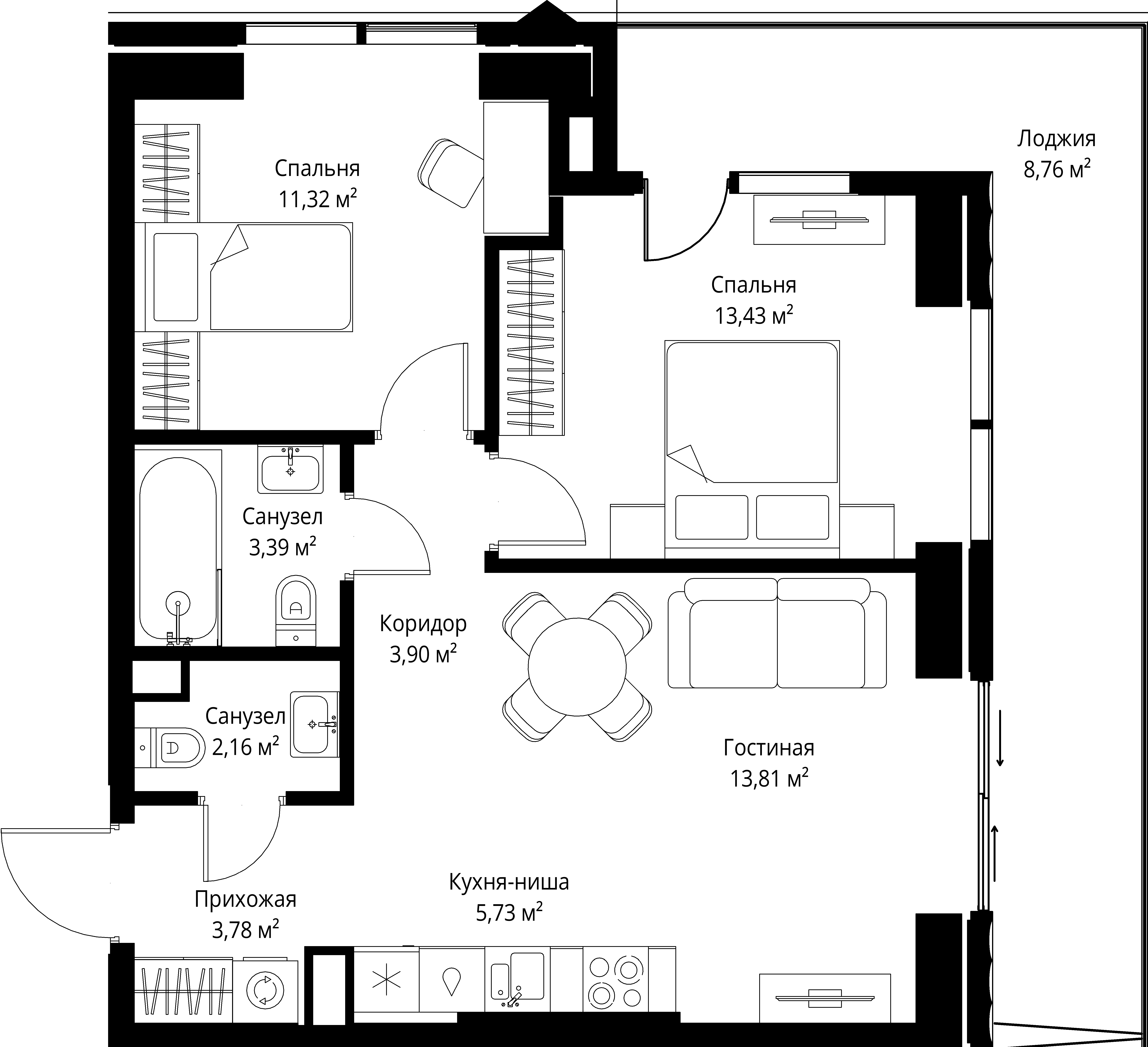 Площадь 60,77 м2