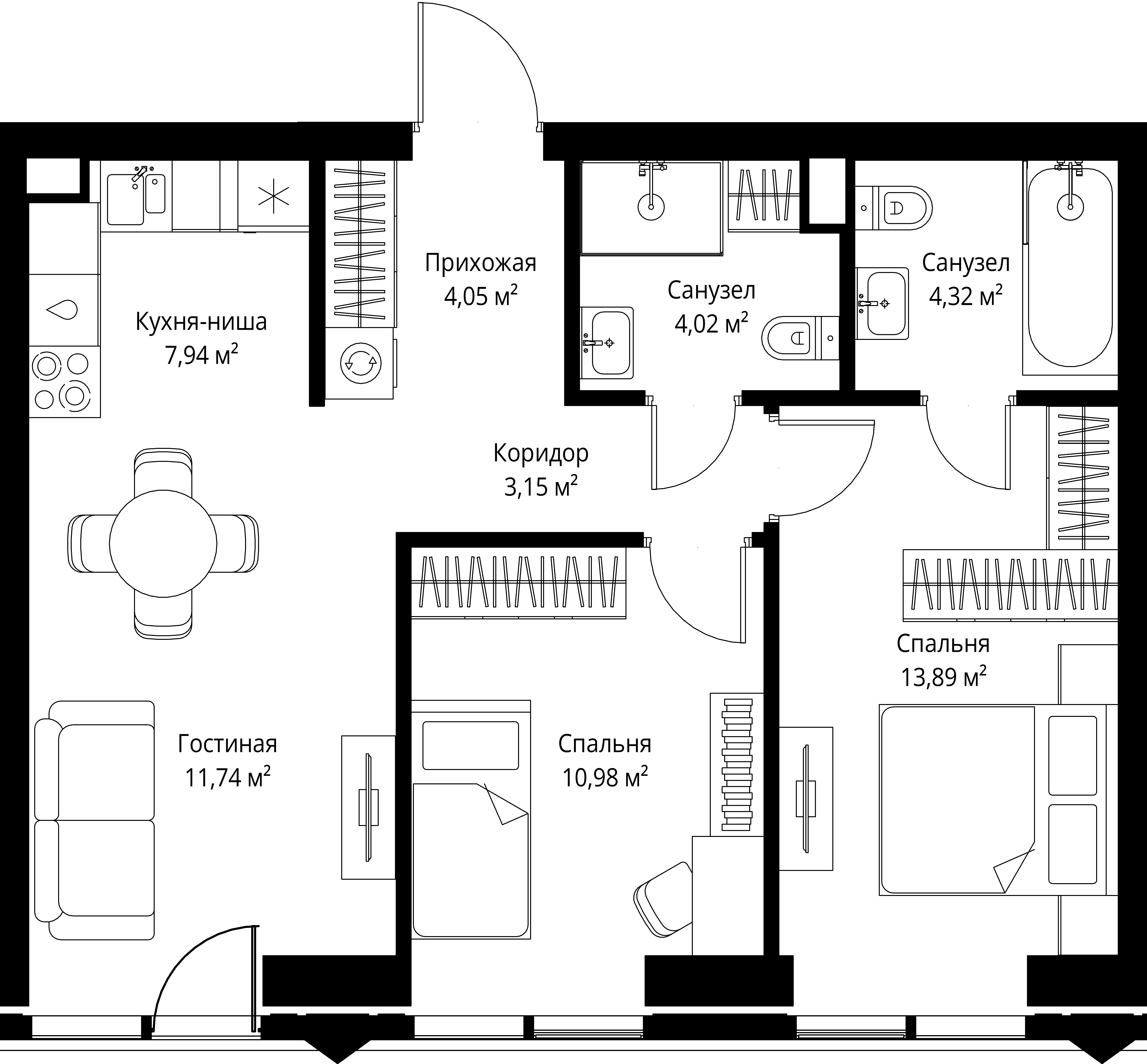 Площадь 60,91 м2