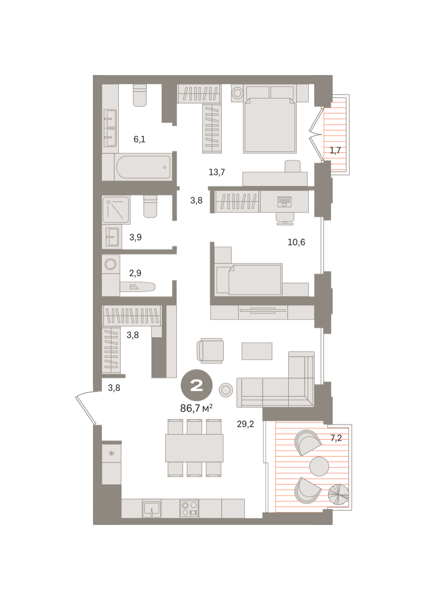 Квартира 86,7 м² - 16 этаж