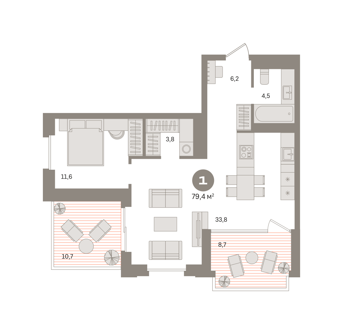 Квартира 79,44 м² - 21 этаж