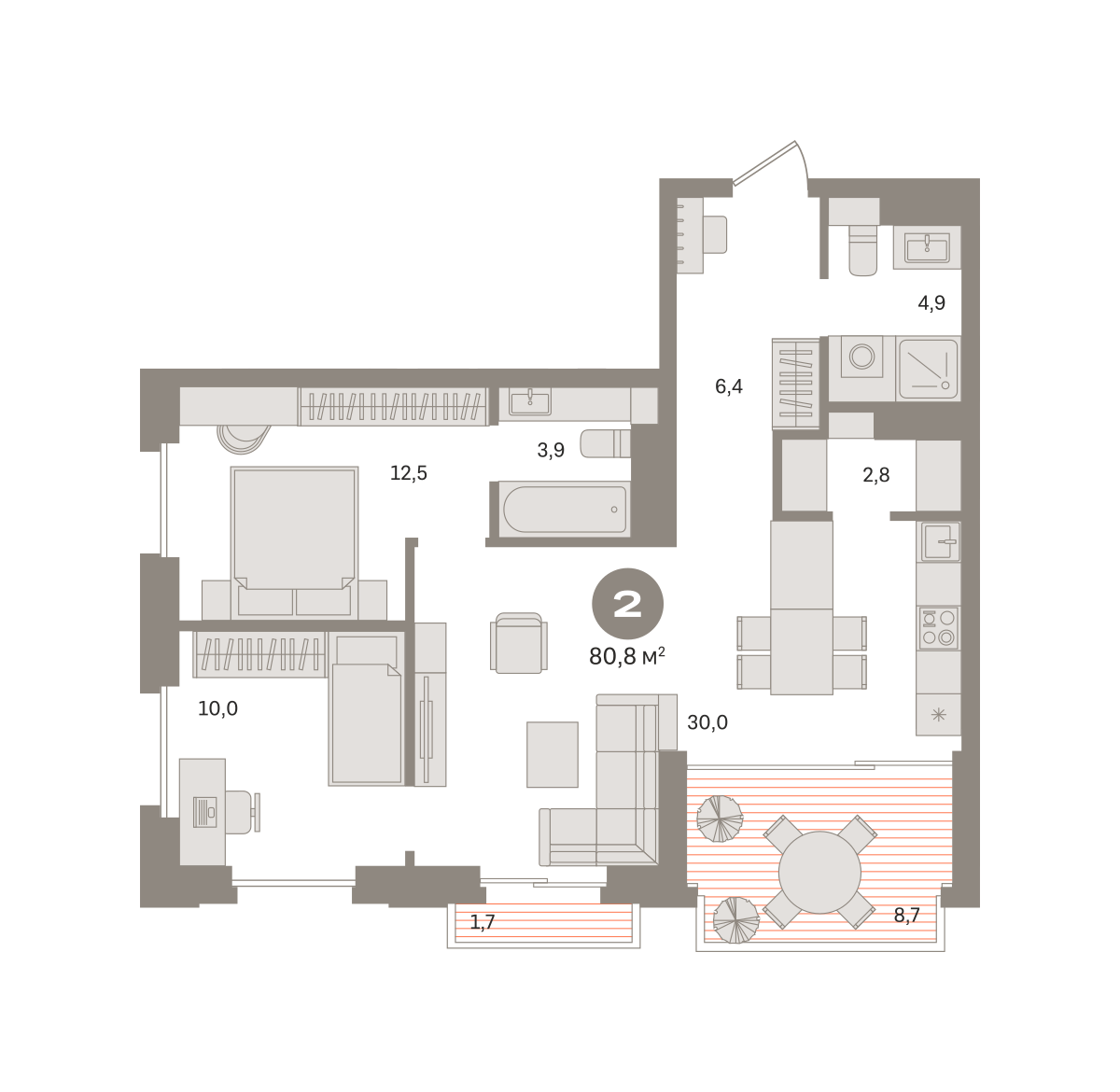 Квартира 80,84 м² - 7 этаж