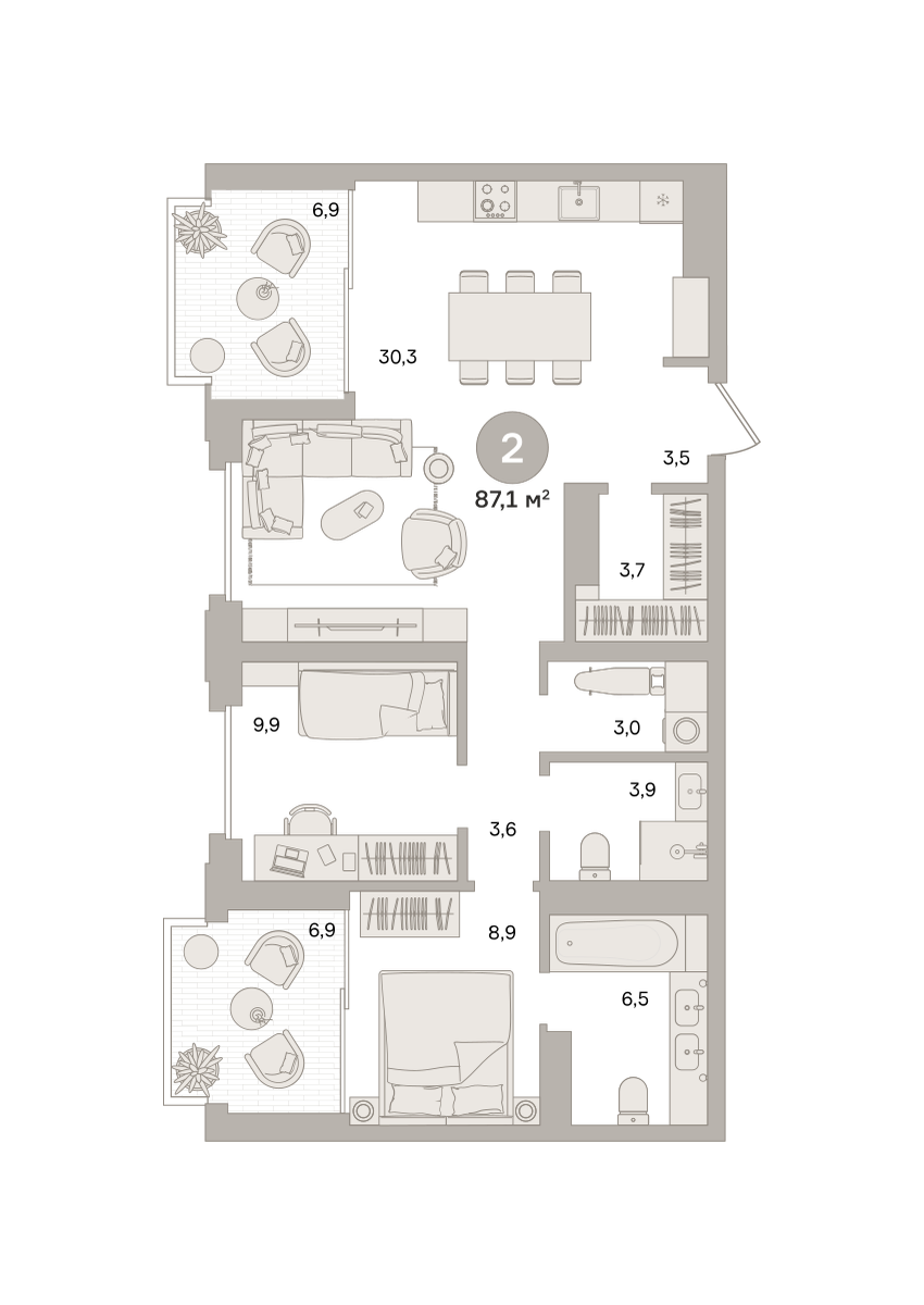 Квартира 87,08 м² - 15 этаж