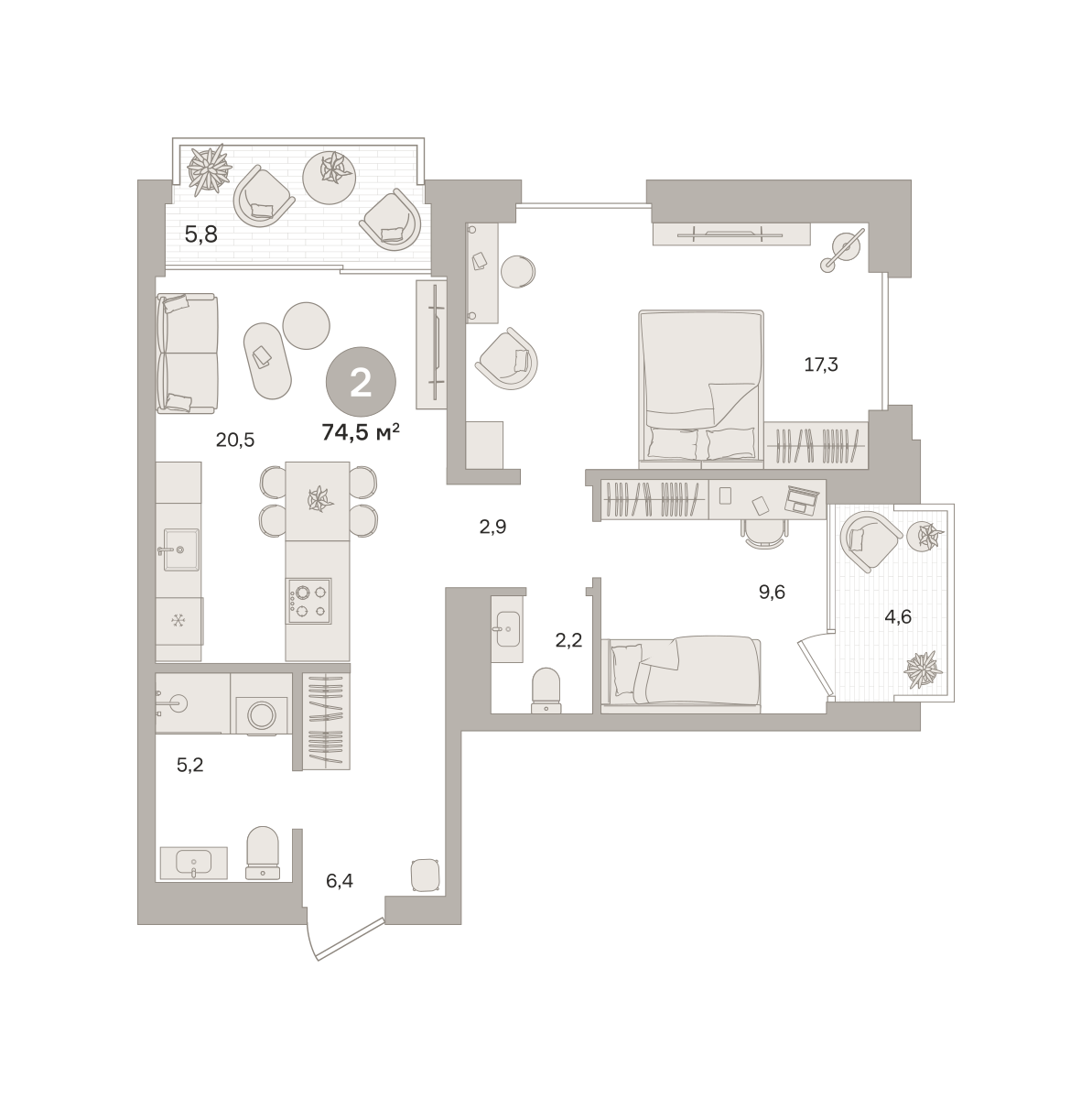 Квартира 74,49 м² - 17 этаж