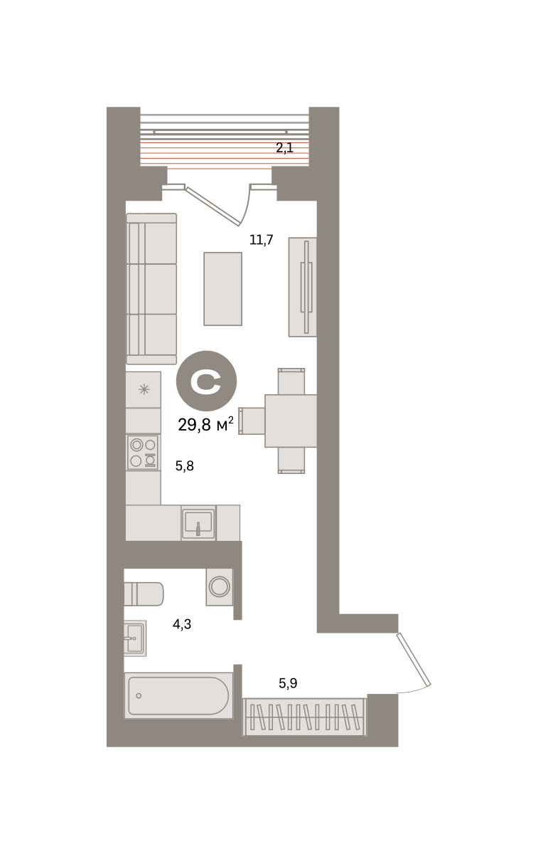Квартира 29,8 м² - 12 этаж