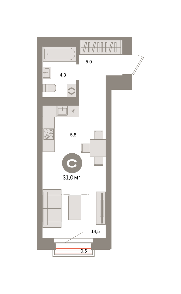 Площадь 29,8 м2