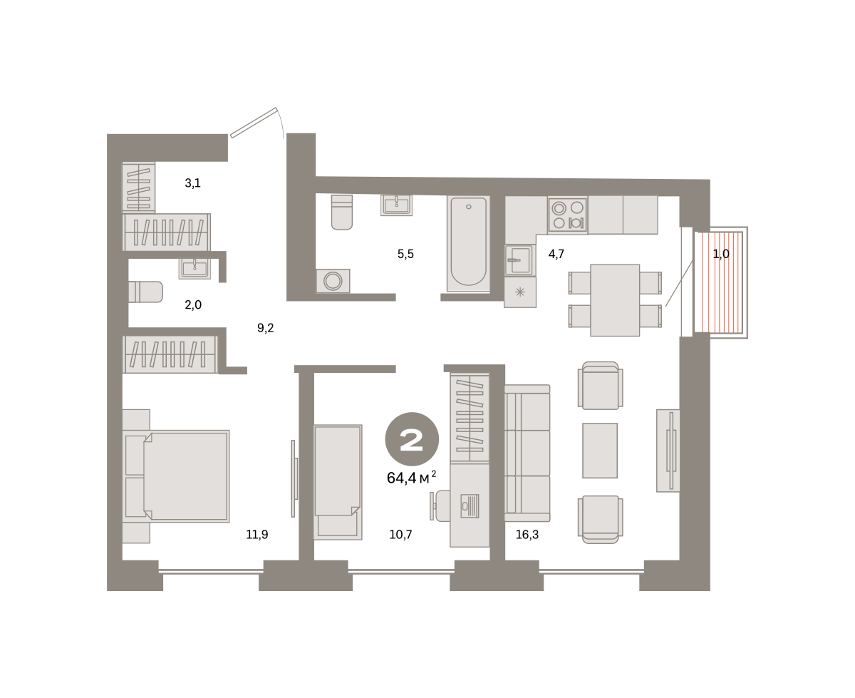 Квартира 64,4 м² - 15 этаж