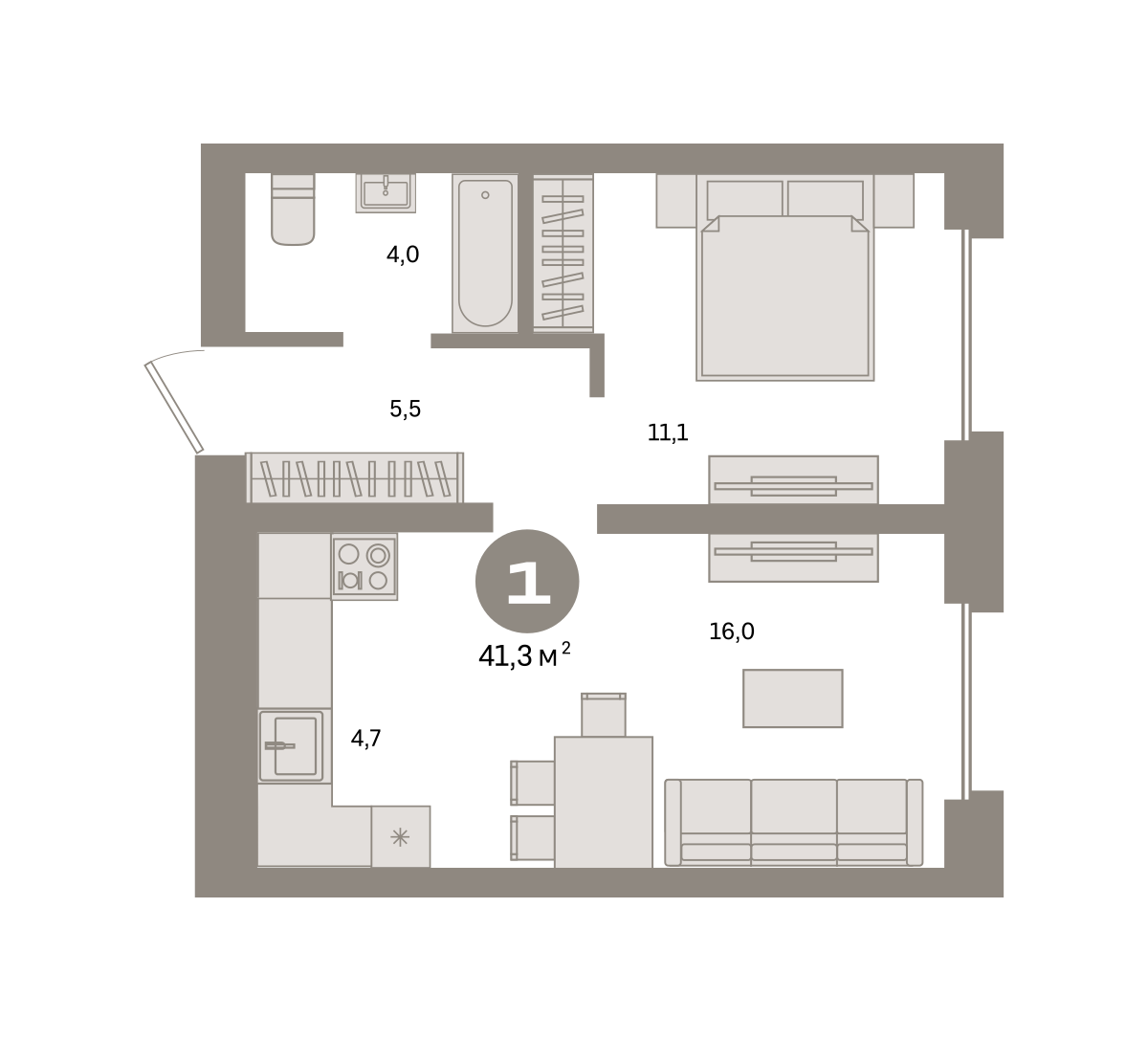 Квартира 41,3 м² - 9 этаж
