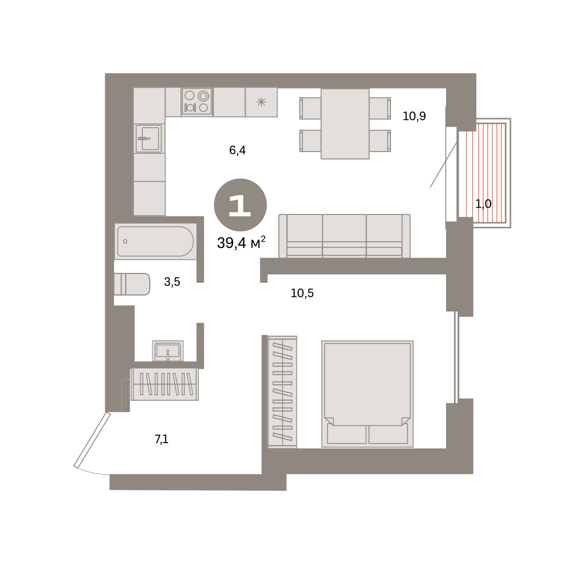 Площадь 39,4 м2