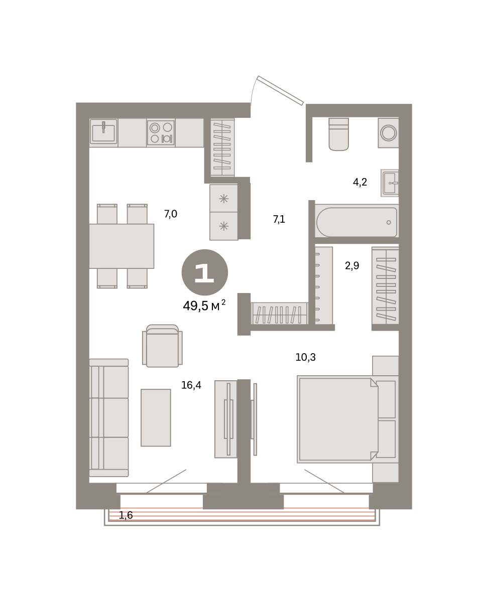 Квартира 49,5 м² - 6 этаж