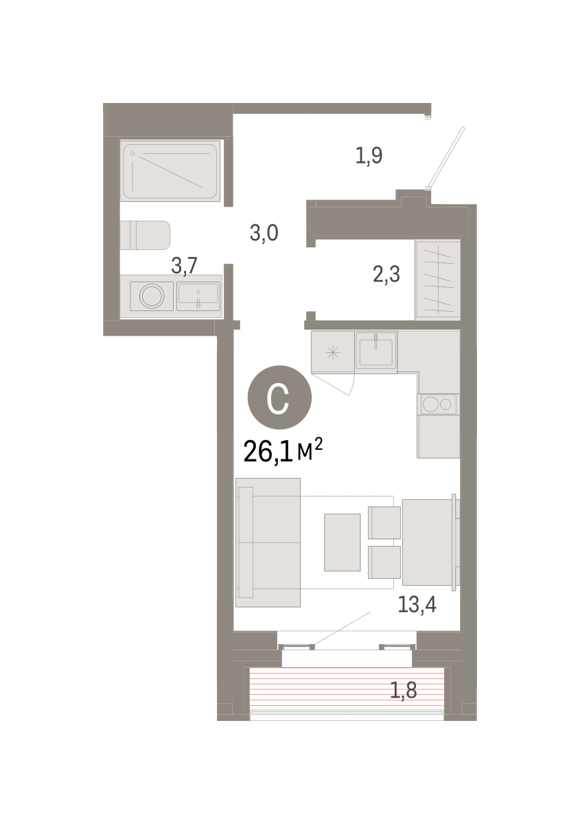 Квартира 26,1 м² - 8 этаж
