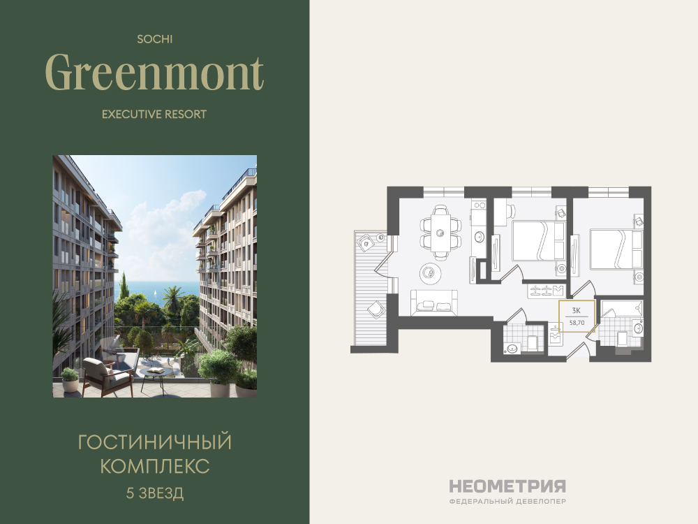 Жилой номер 59,5 м² - 6 этаж