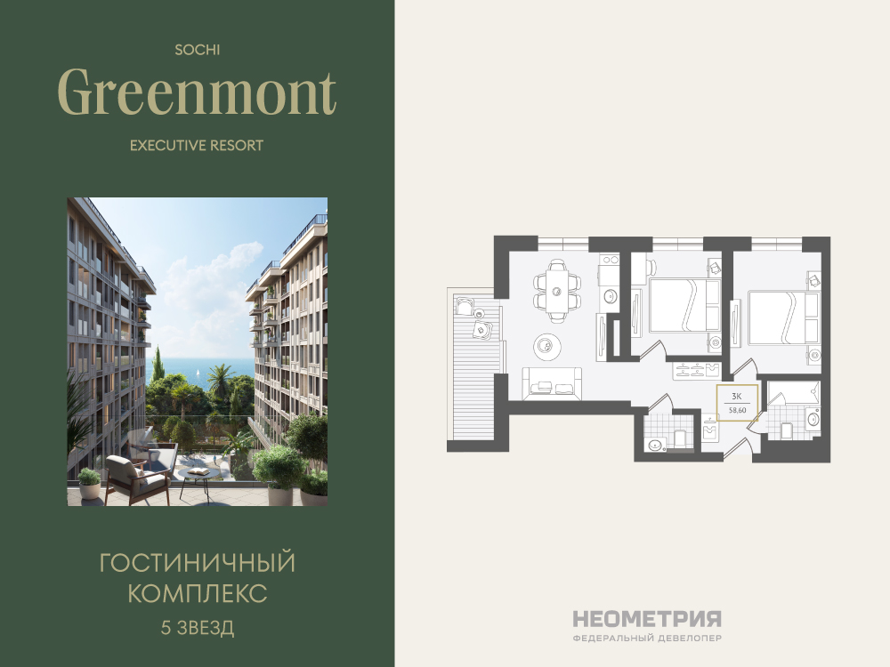 Жилой номер 59,4 м² - 7 этаж