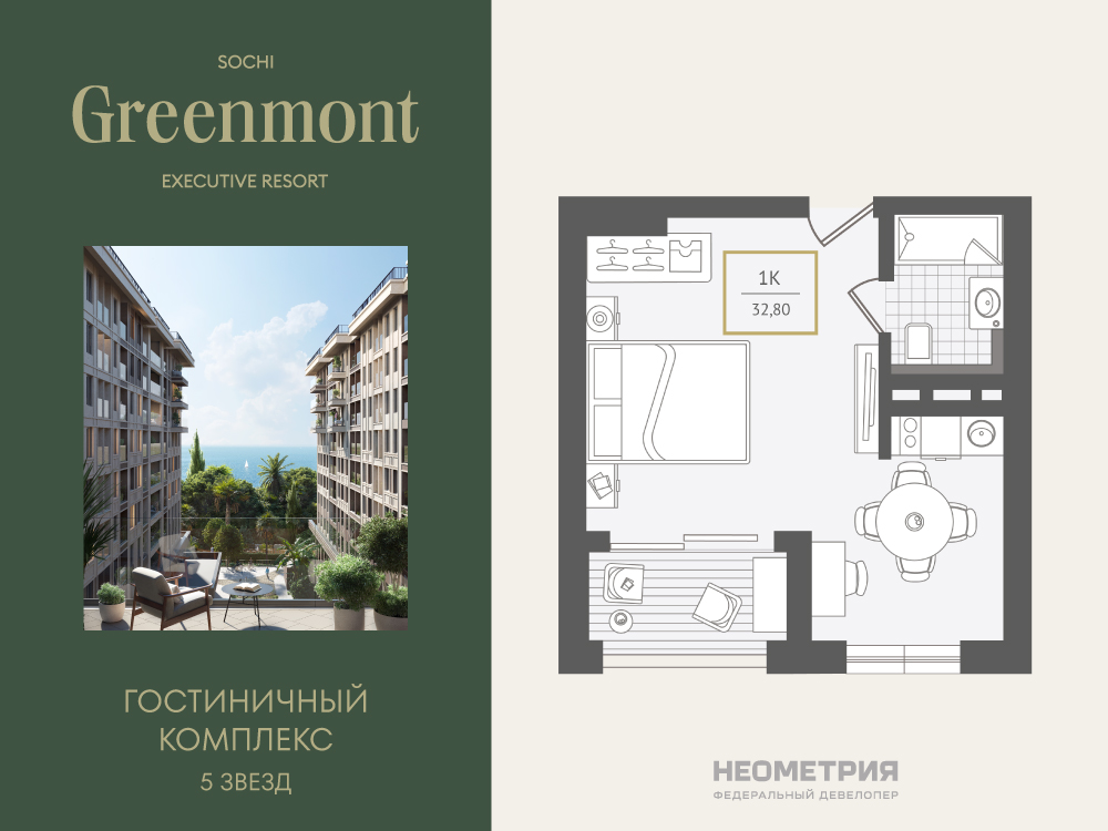 Жилой номер 32,7 м² - 3 этаж