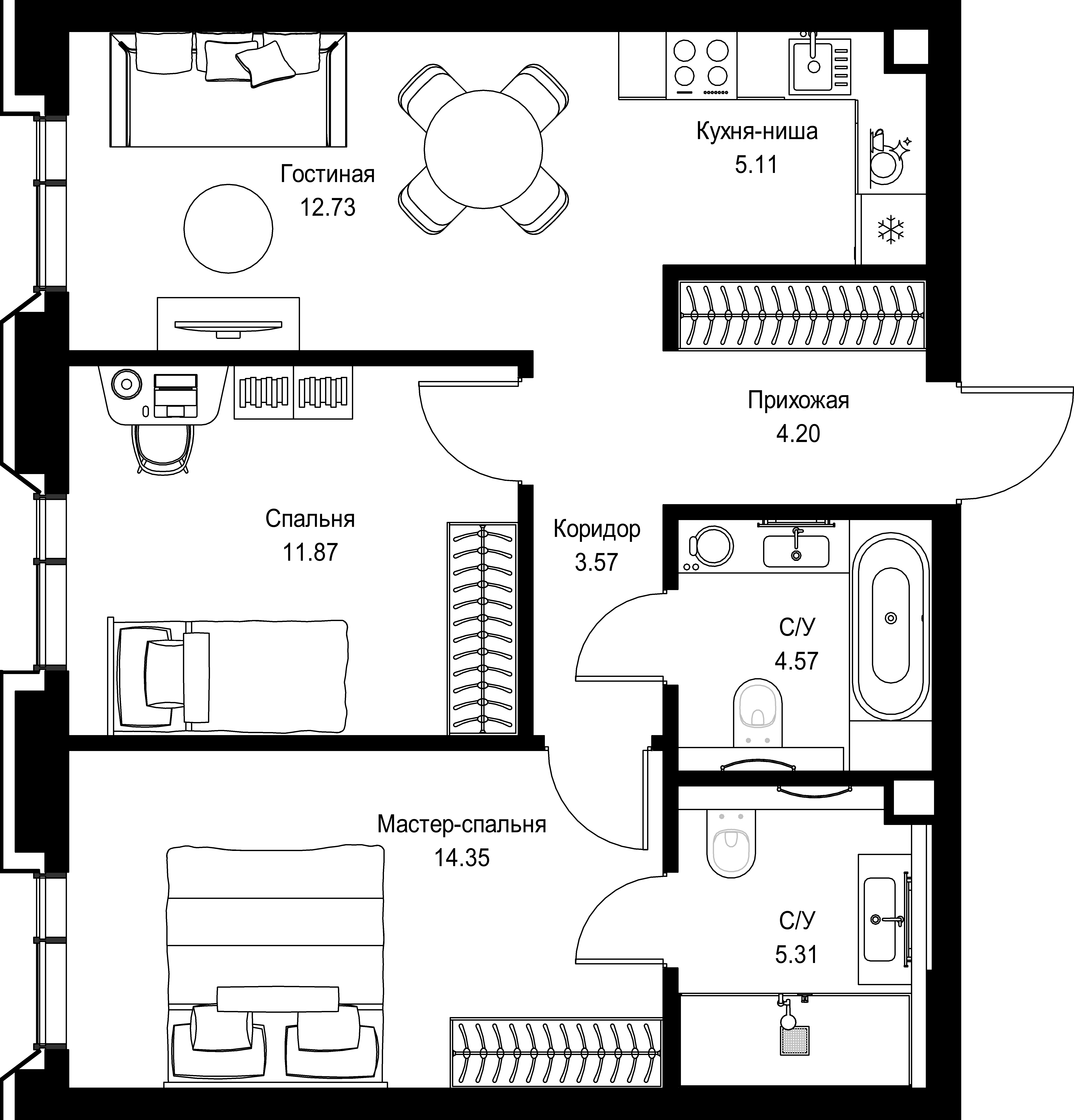 Квартира 61,71 м² - 5 этаж