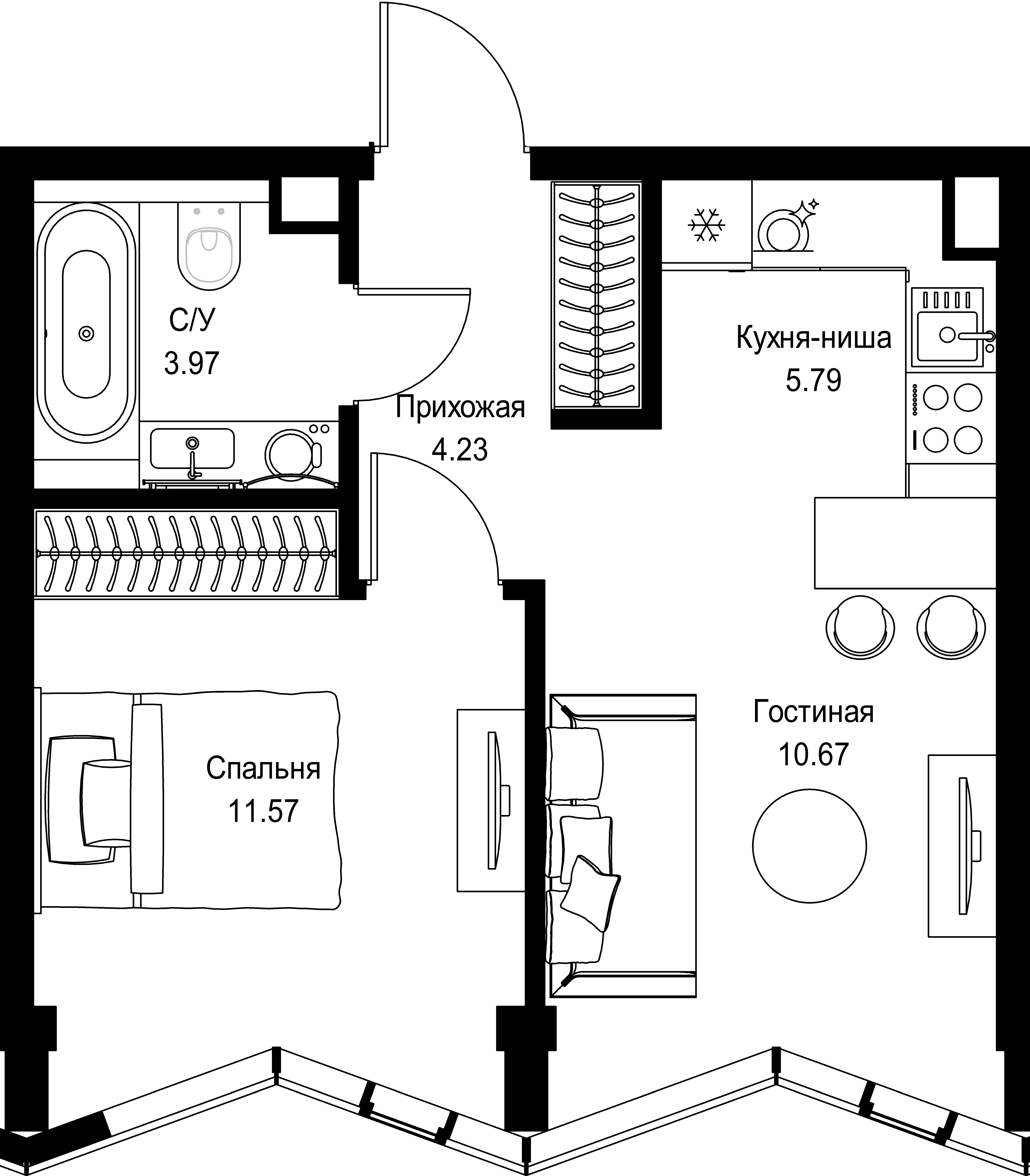 Квартира 36,23 м² - 21 этаж