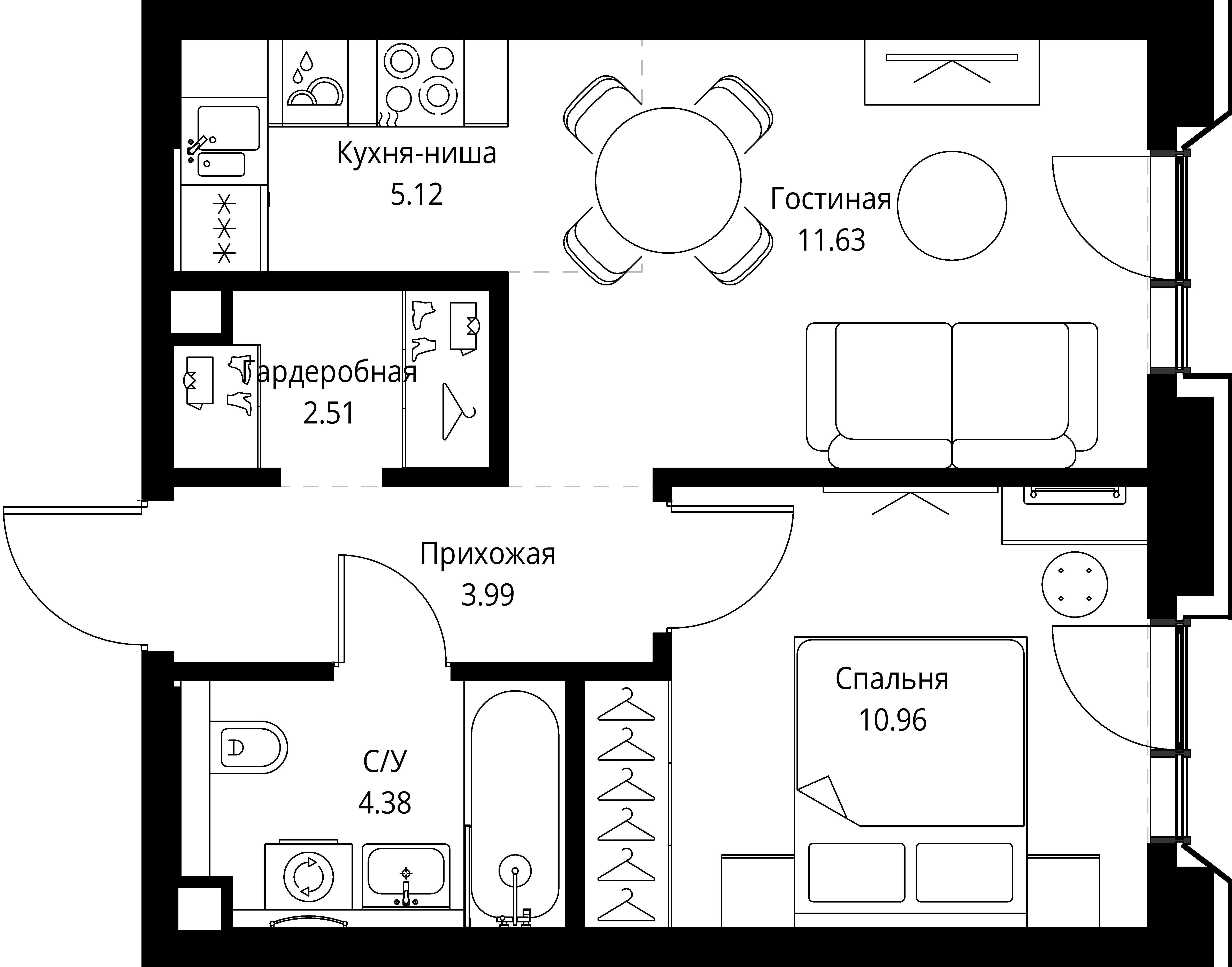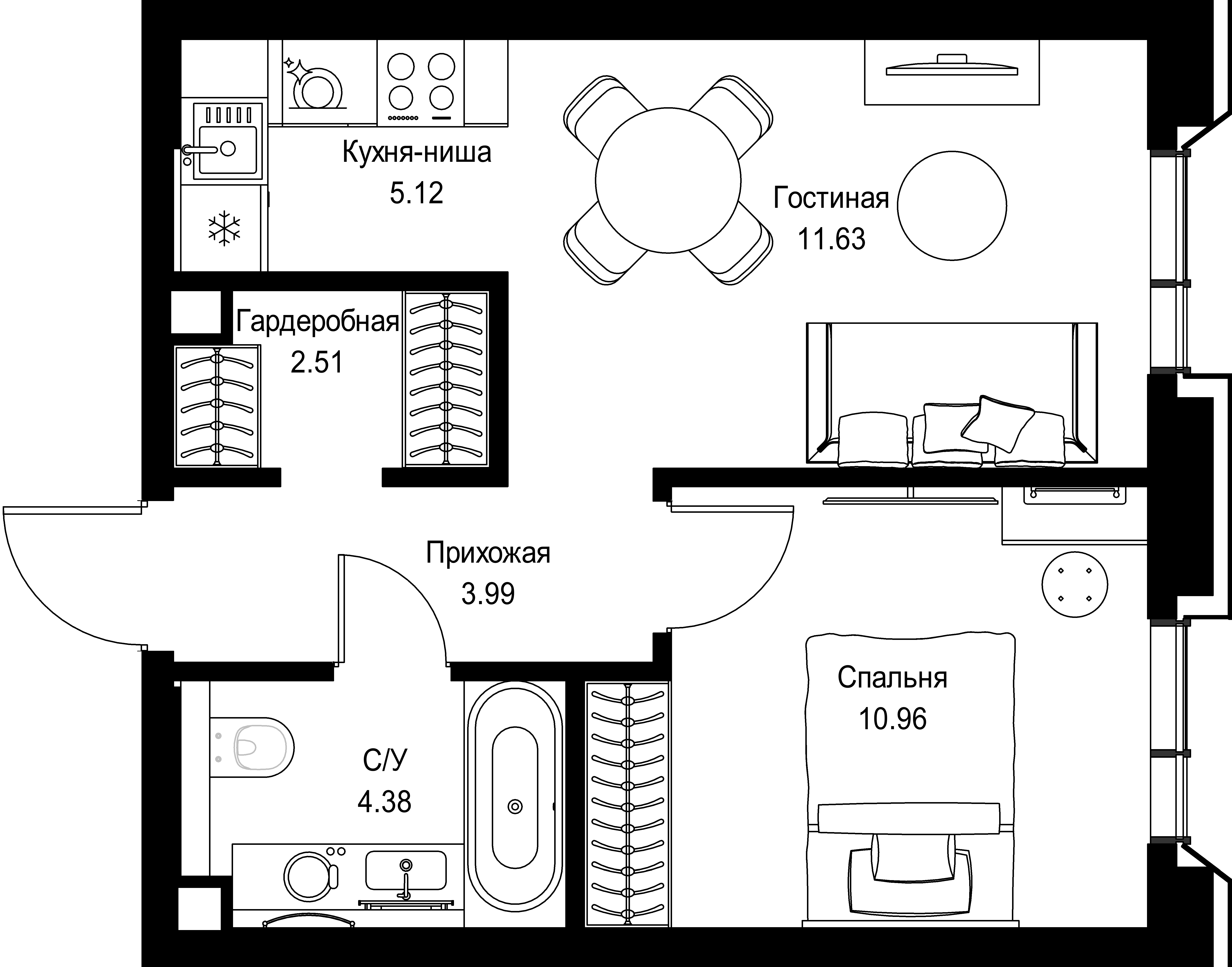 Квартира 38,59 м² - 4 этаж