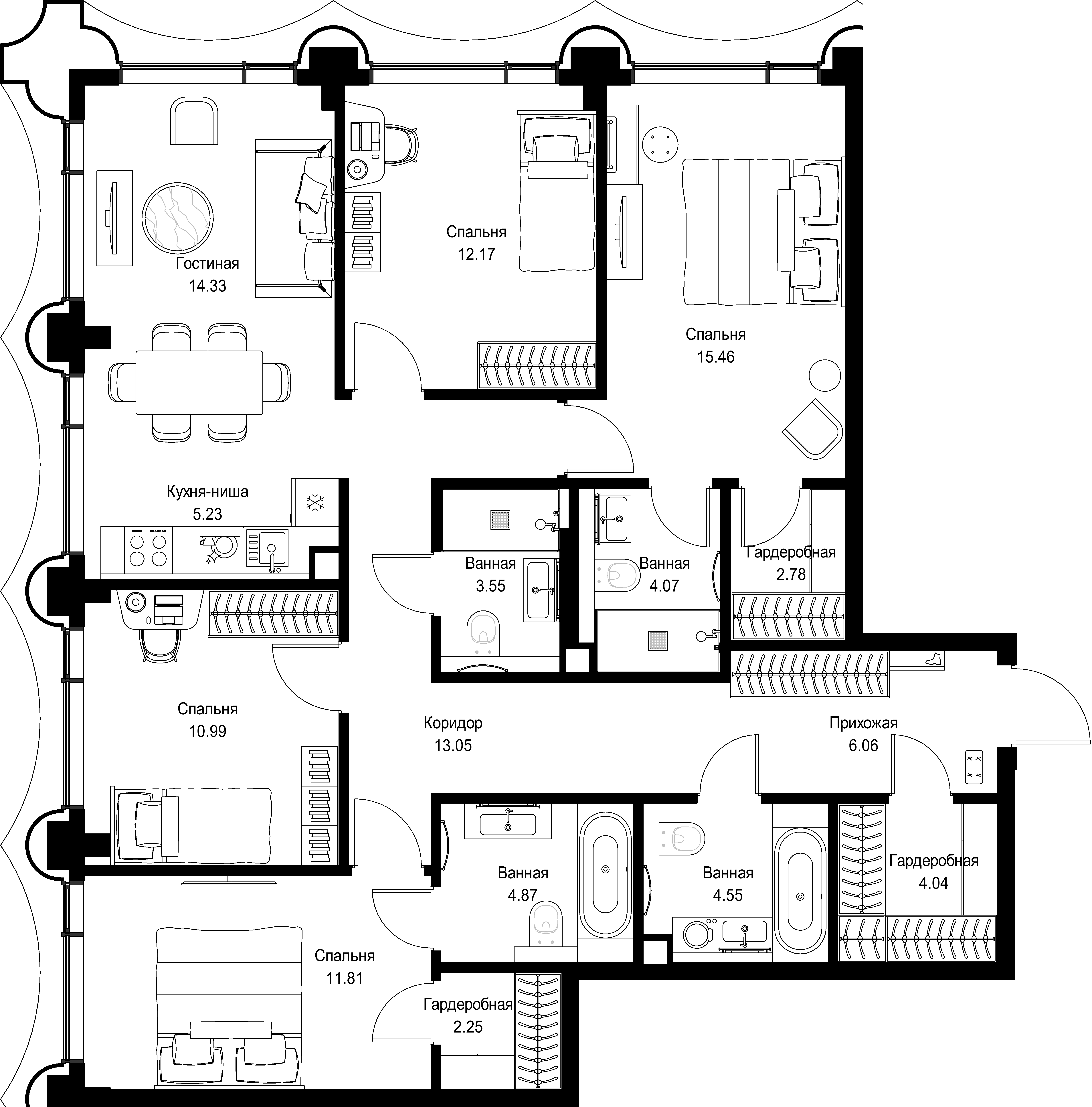 4 спальни