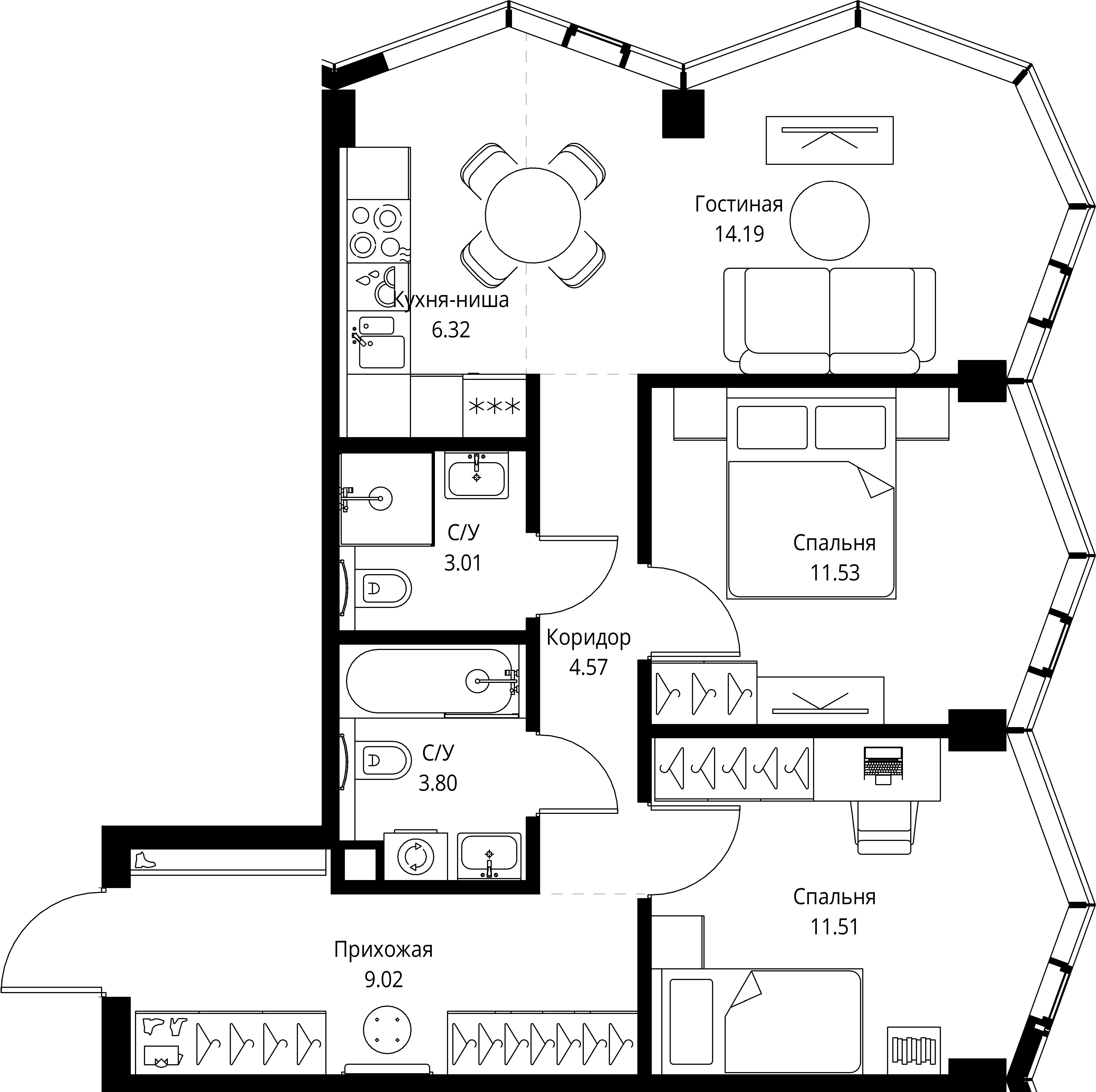 Площадь 59,11 м2