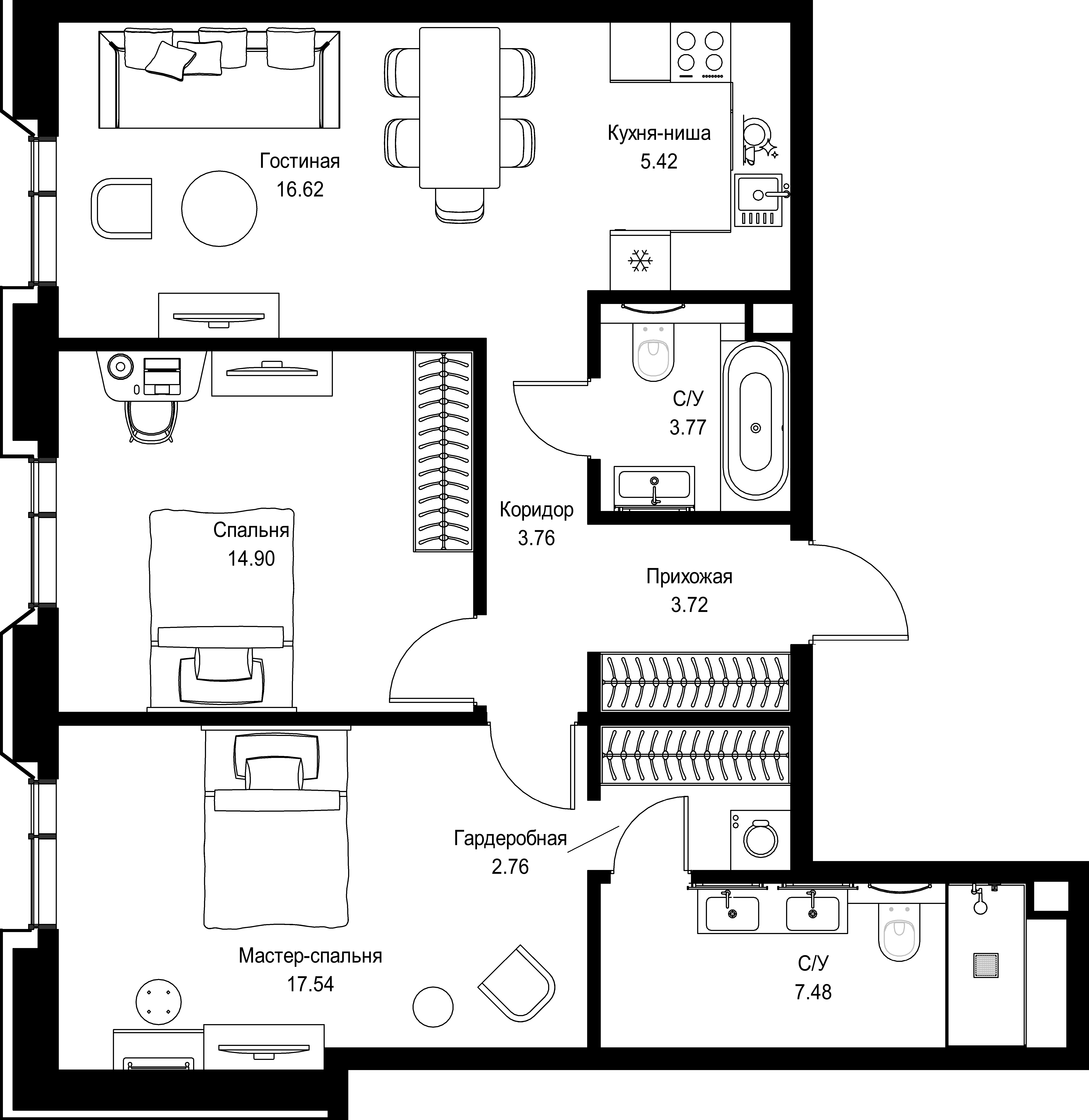 Квартира 75,97 м² - 7 этаж