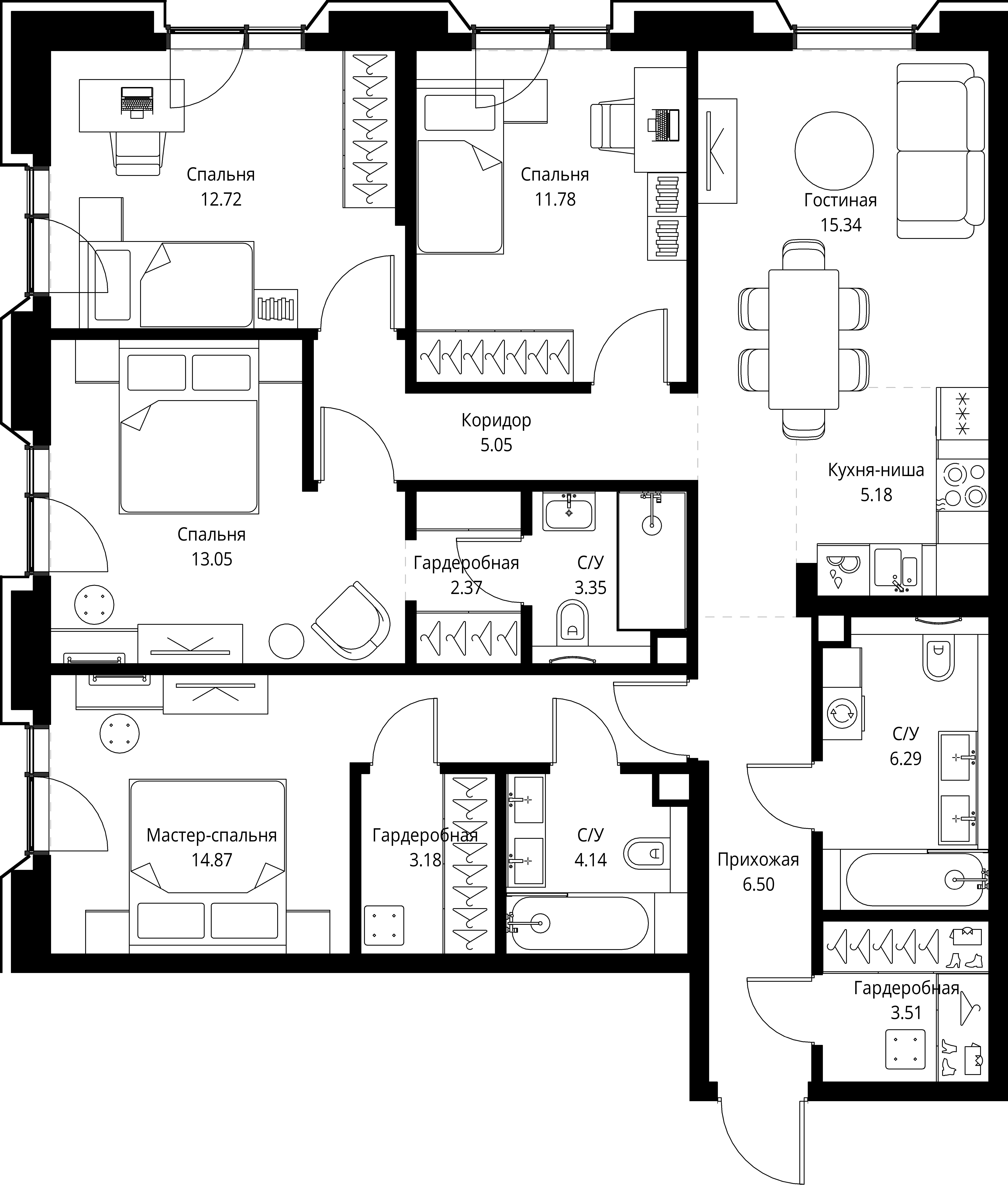 4 спальни