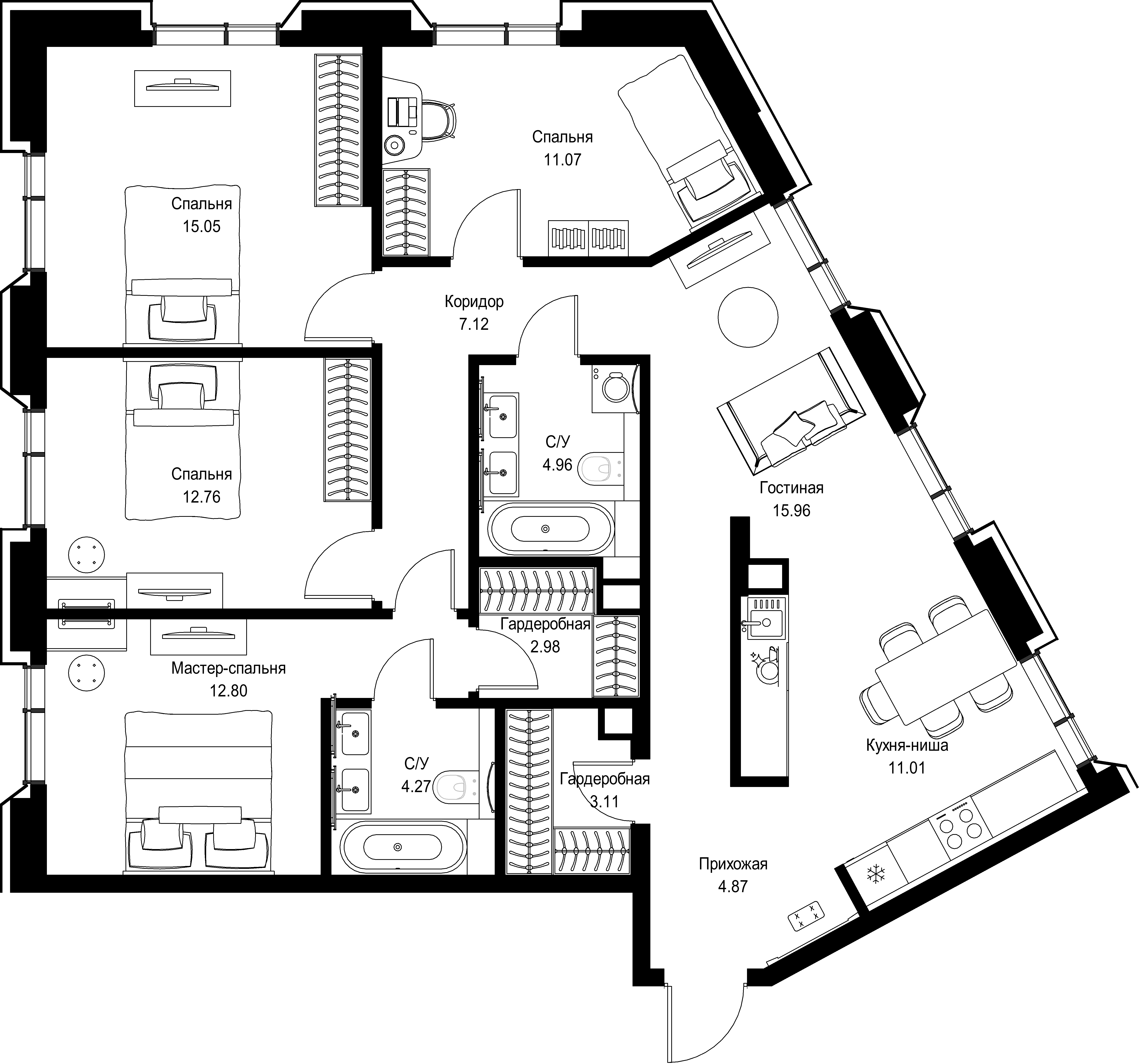 Квартира 105,96 м² - 16 этаж
