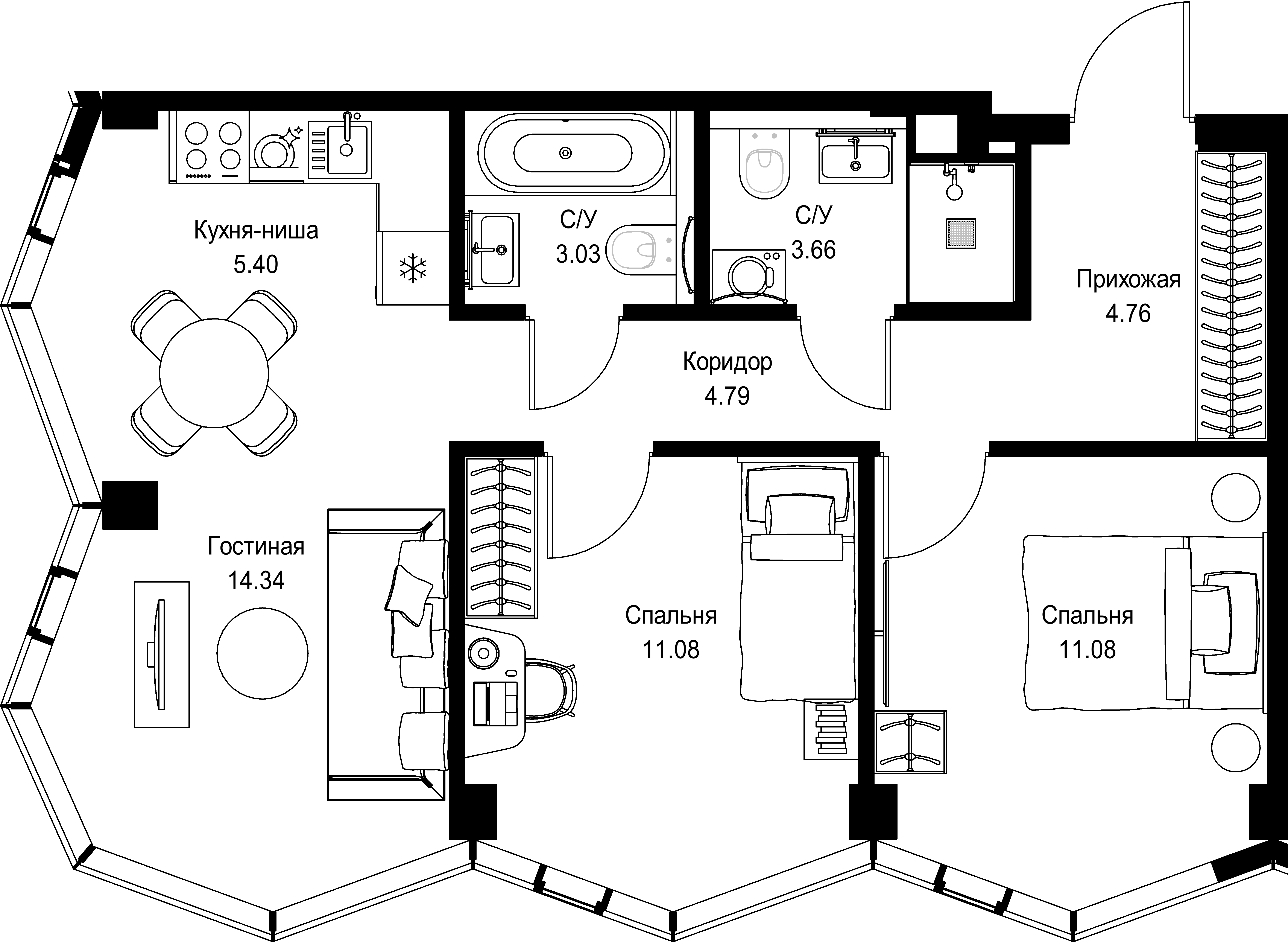 2 спальни