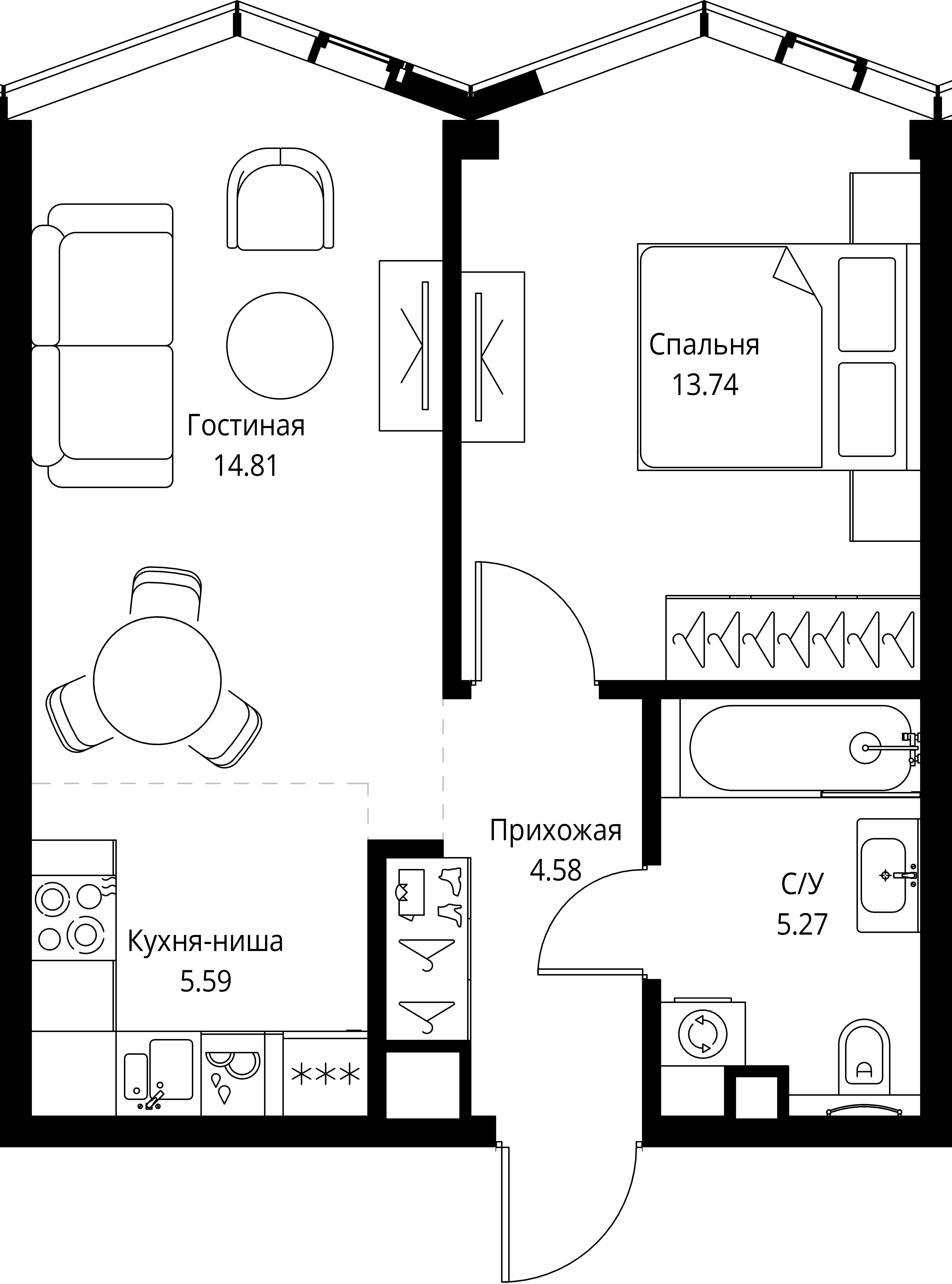 Площадь 42,86 м2