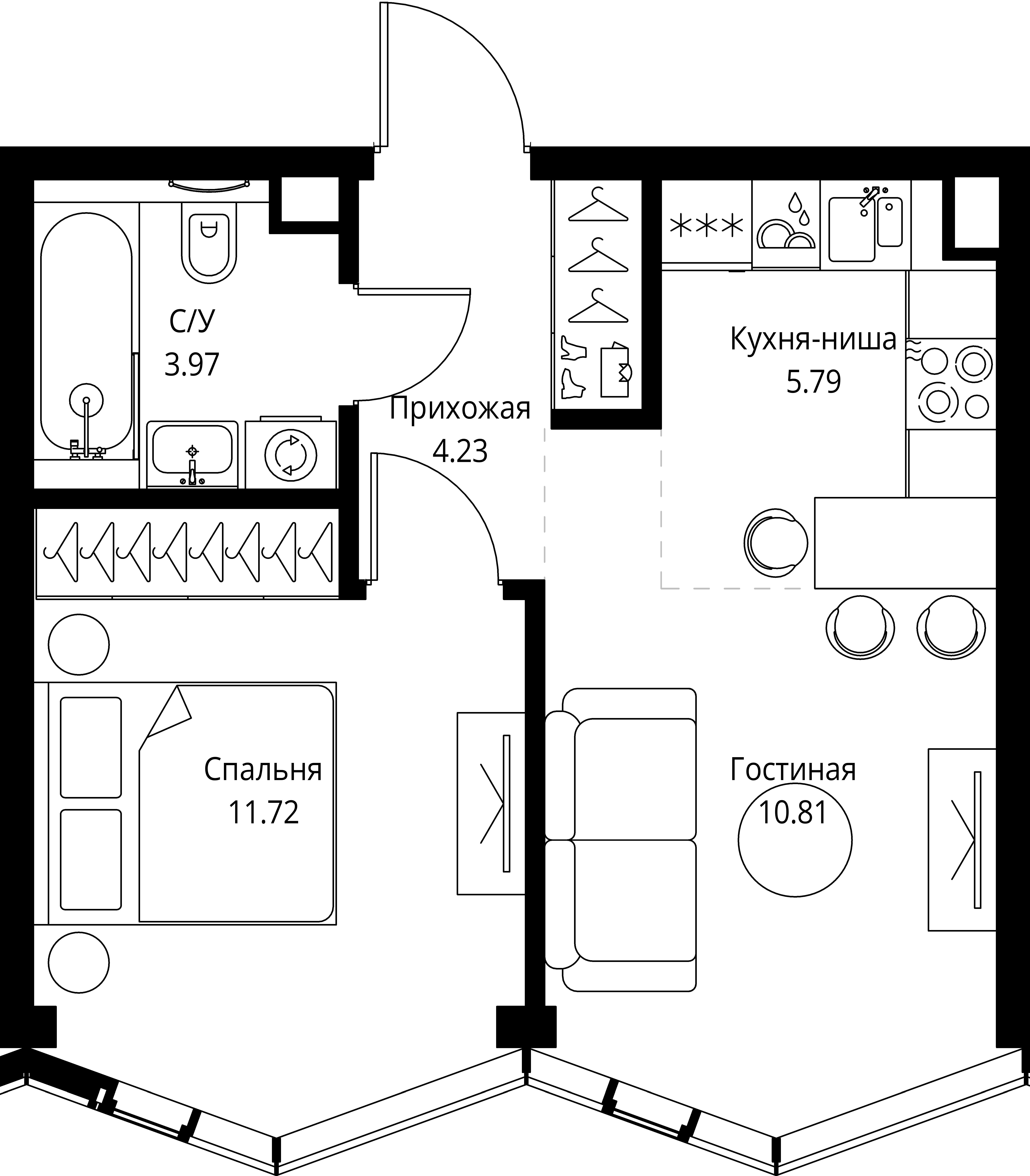 Площадь 43,16 м2