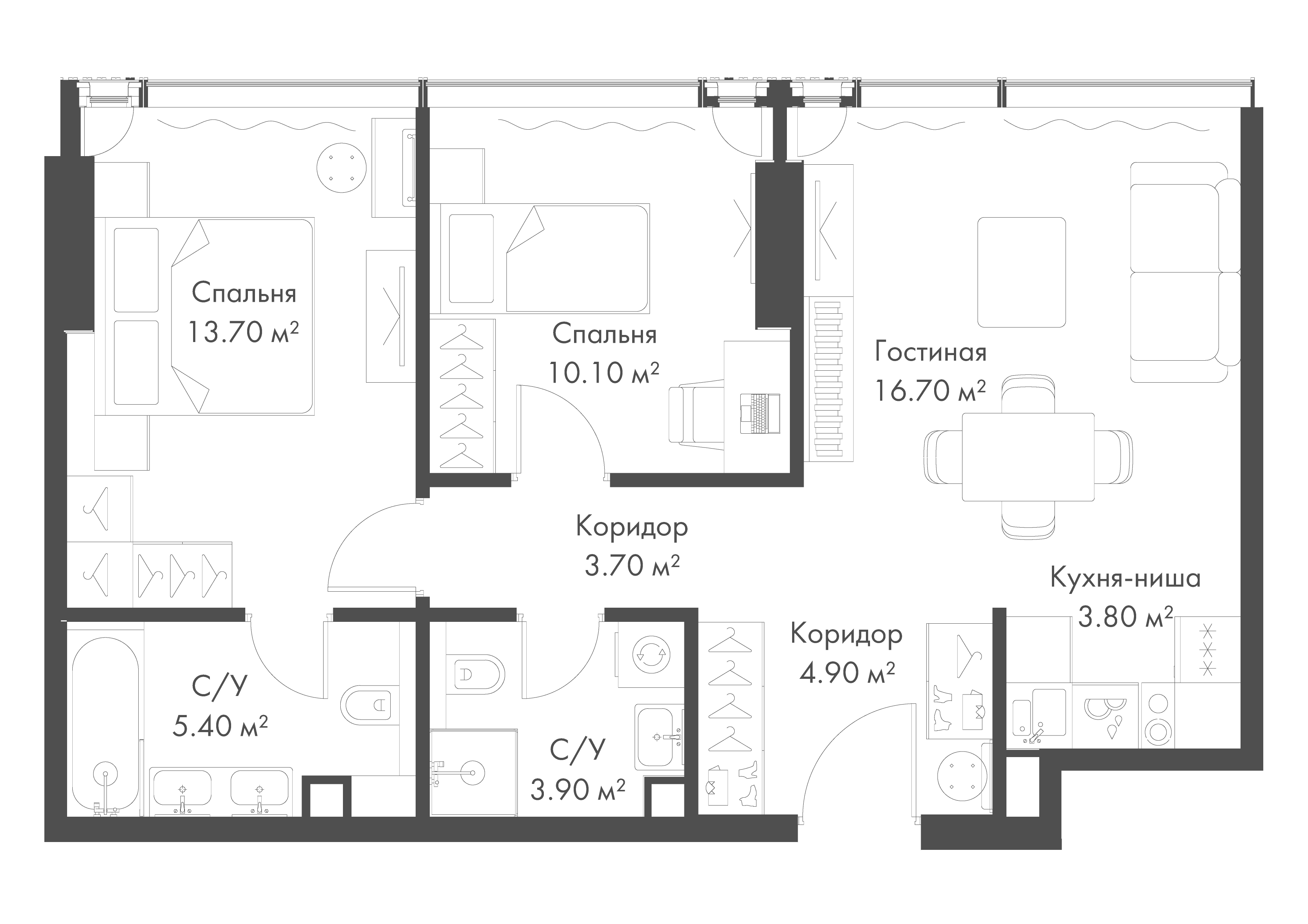 Площадь 60,8 м2