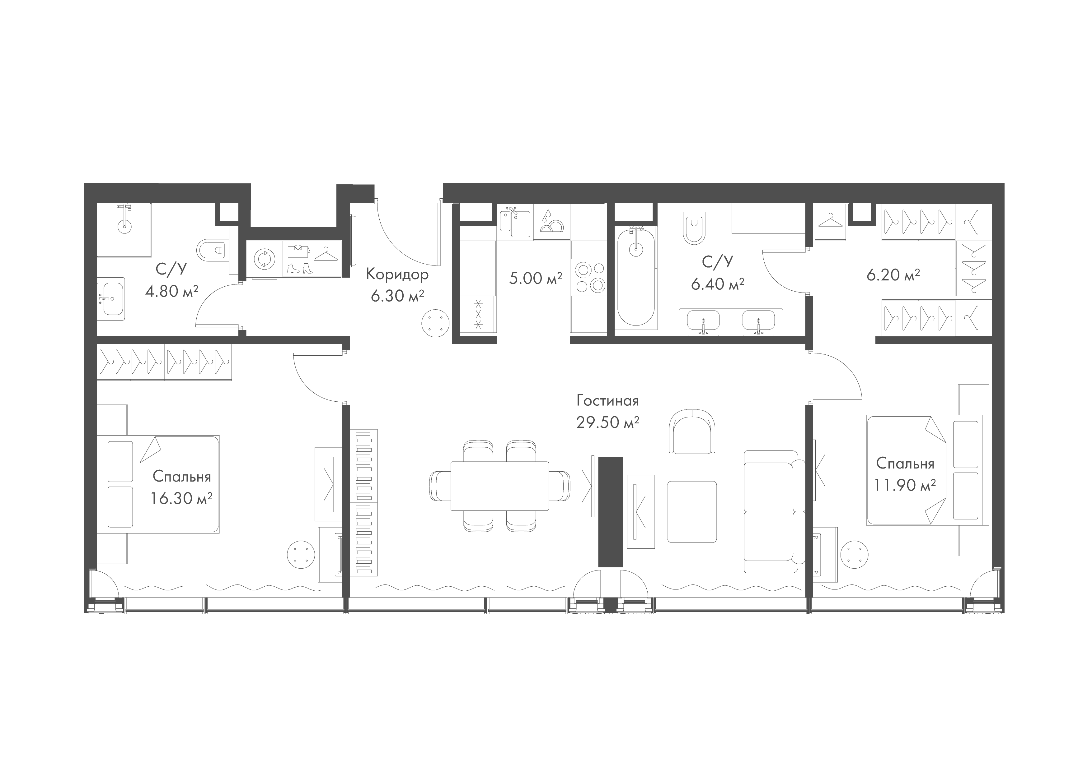 Квартира 86,4 м² - 11 этаж