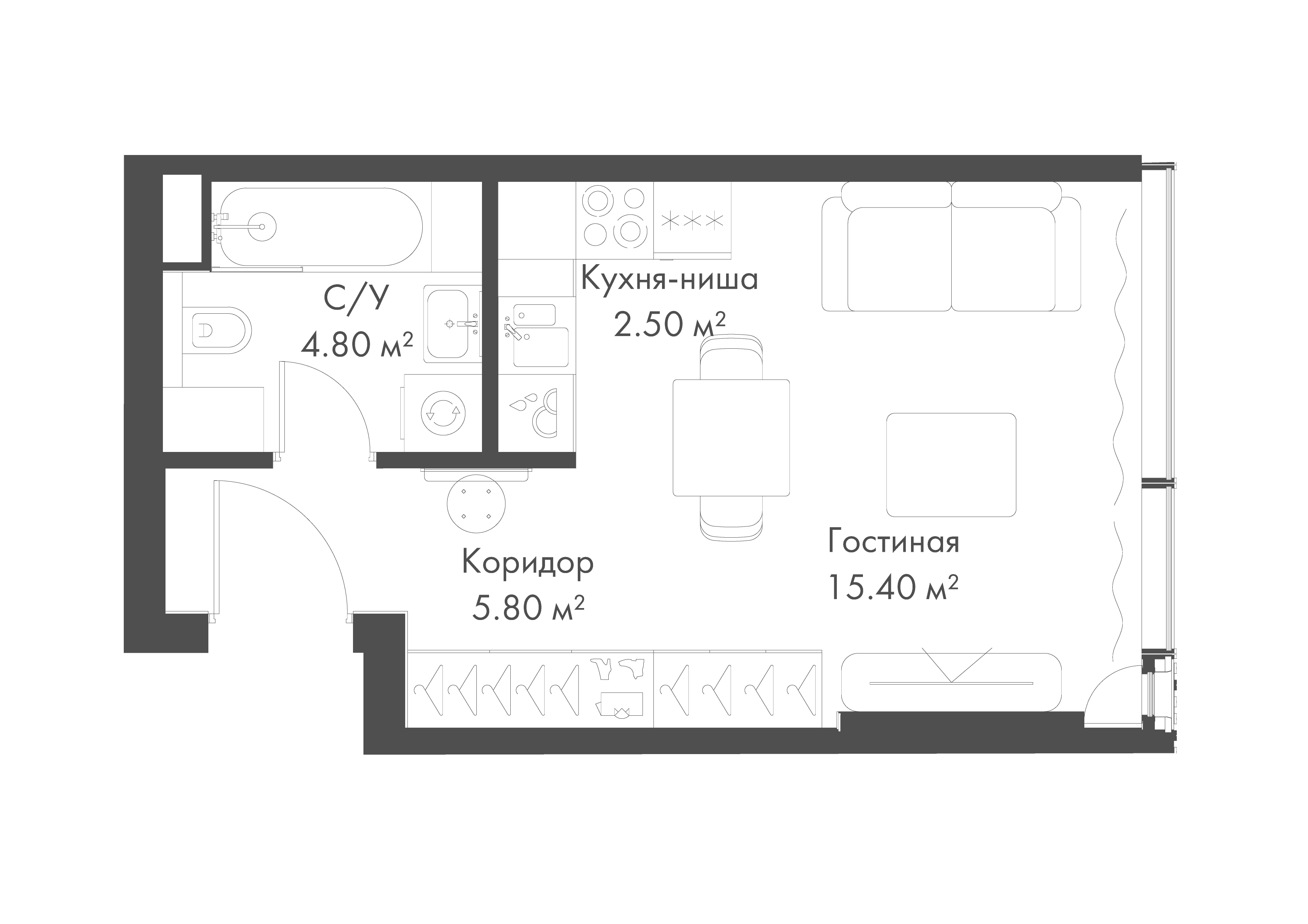 Площадь 29,8 м2