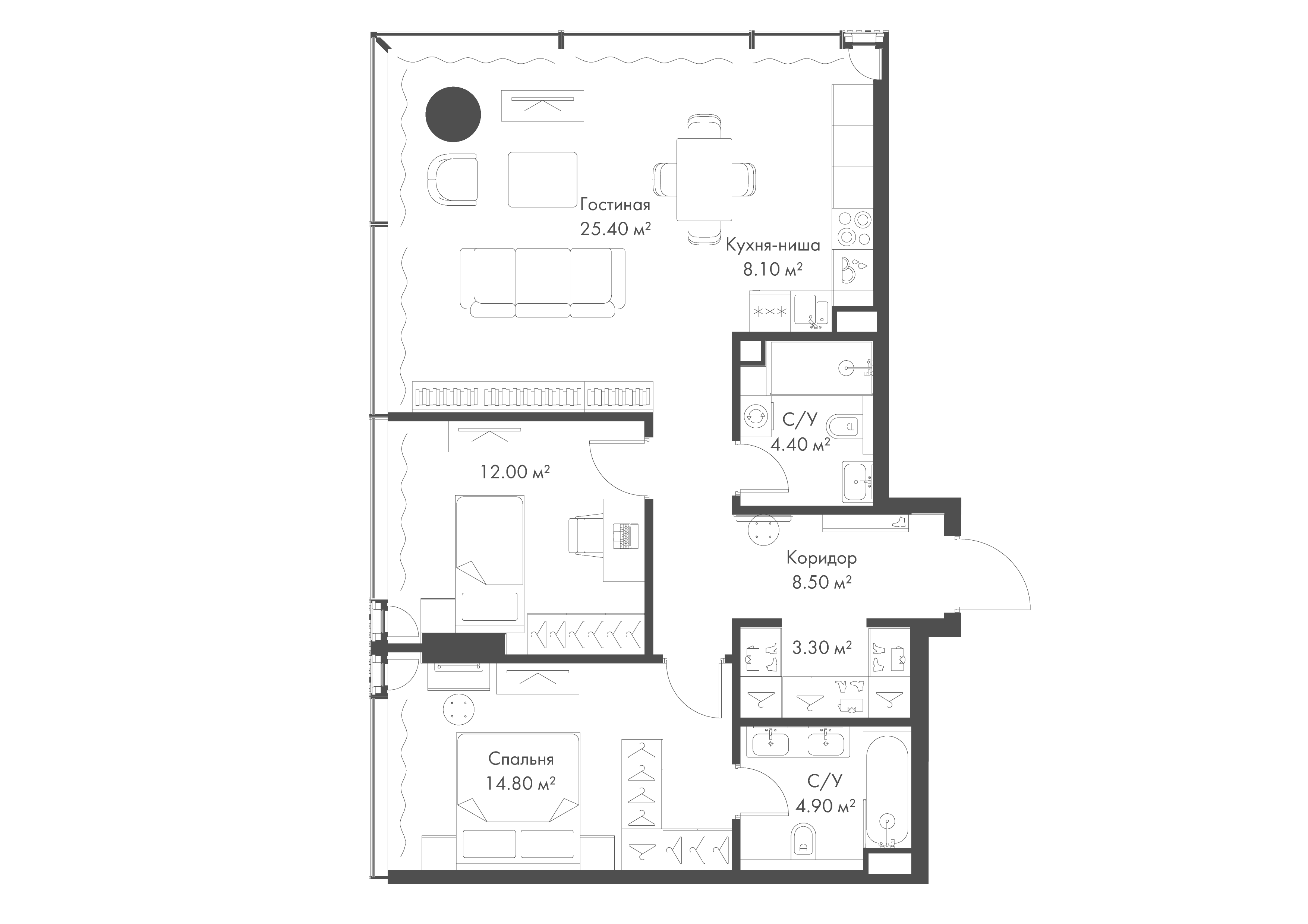 Квартира 81,4 м² - 22 этаж