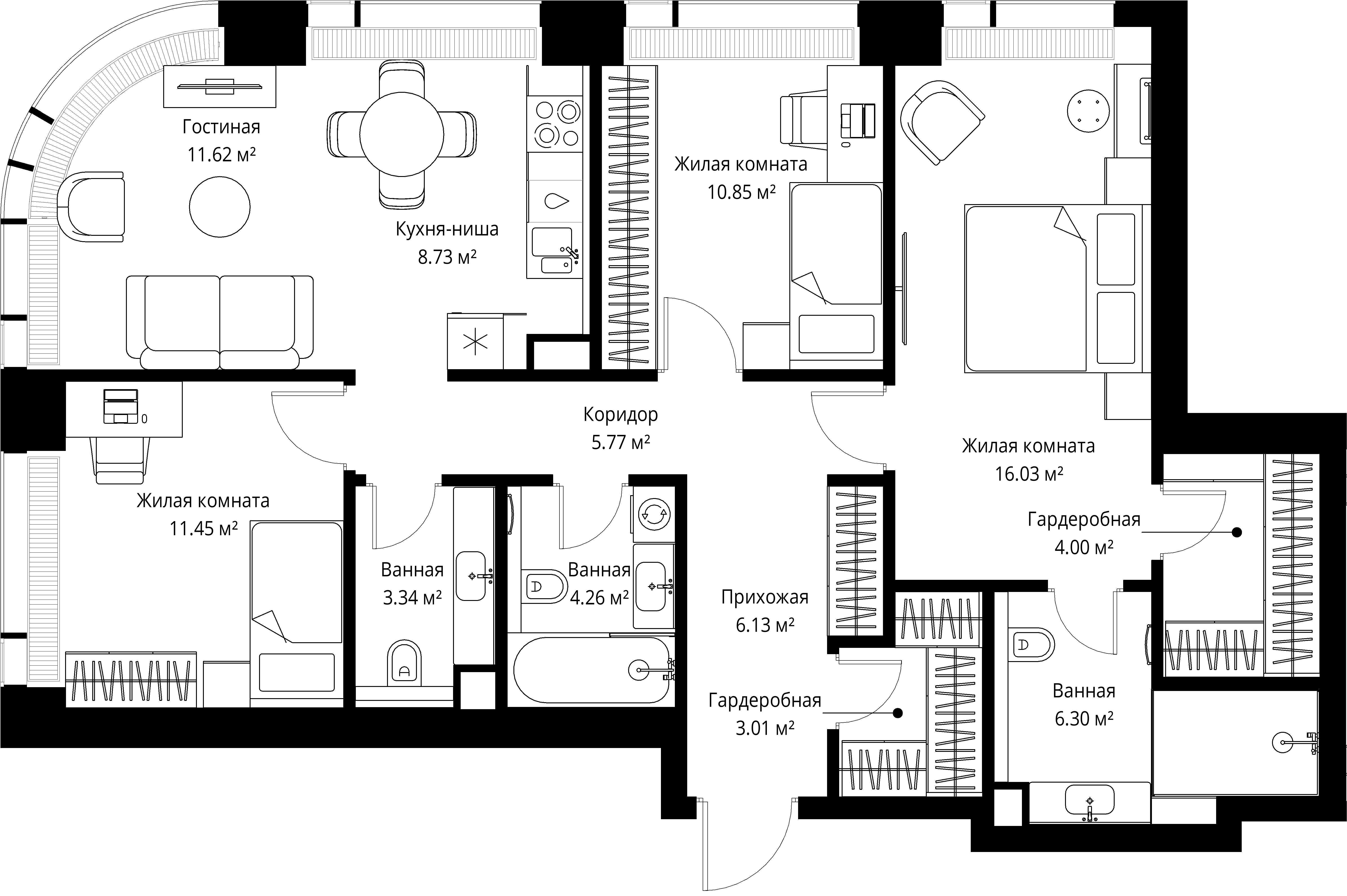 Квартира 91,49 м² - 5 этаж