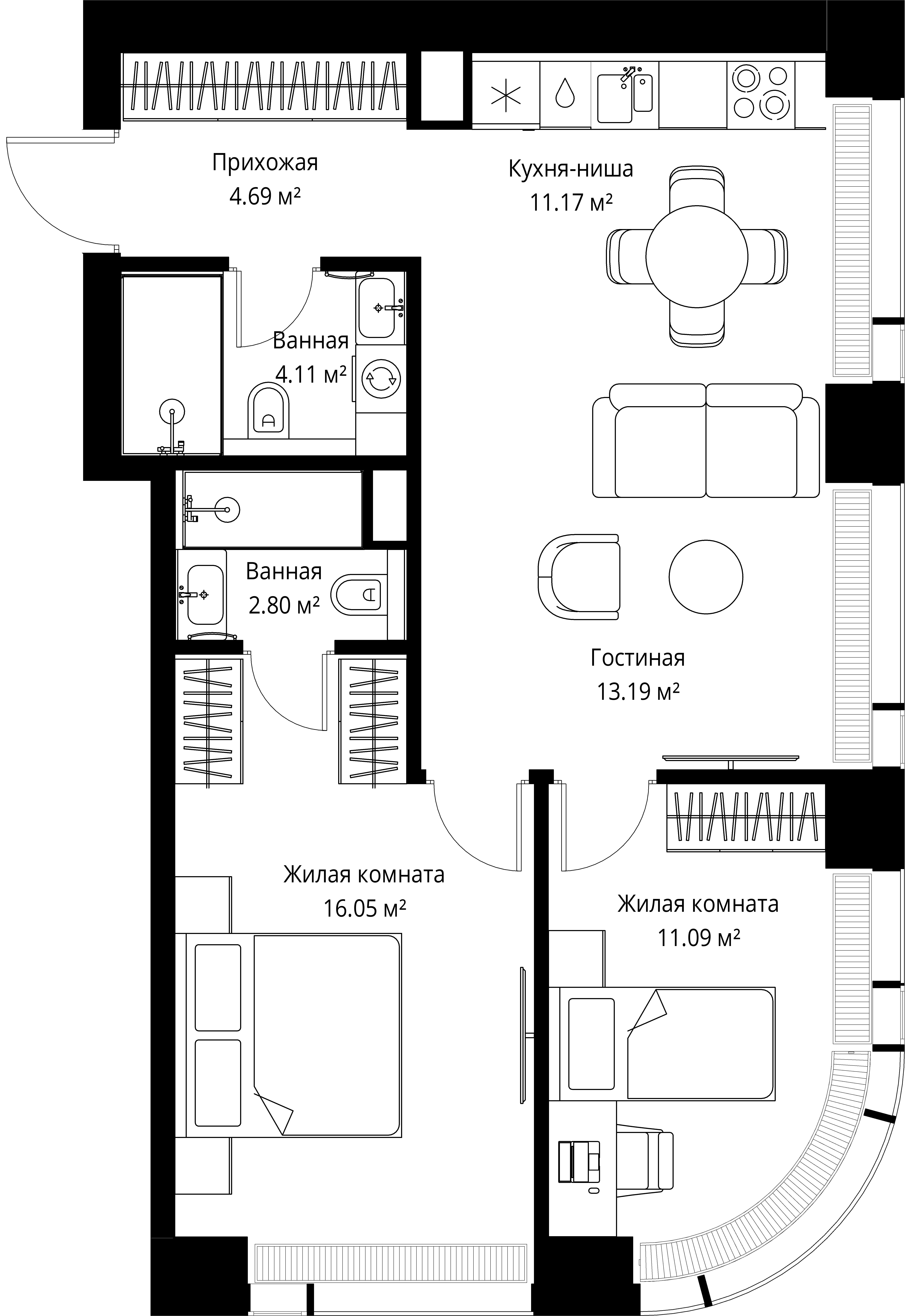 Квартира 63,1 м² - 2 этаж