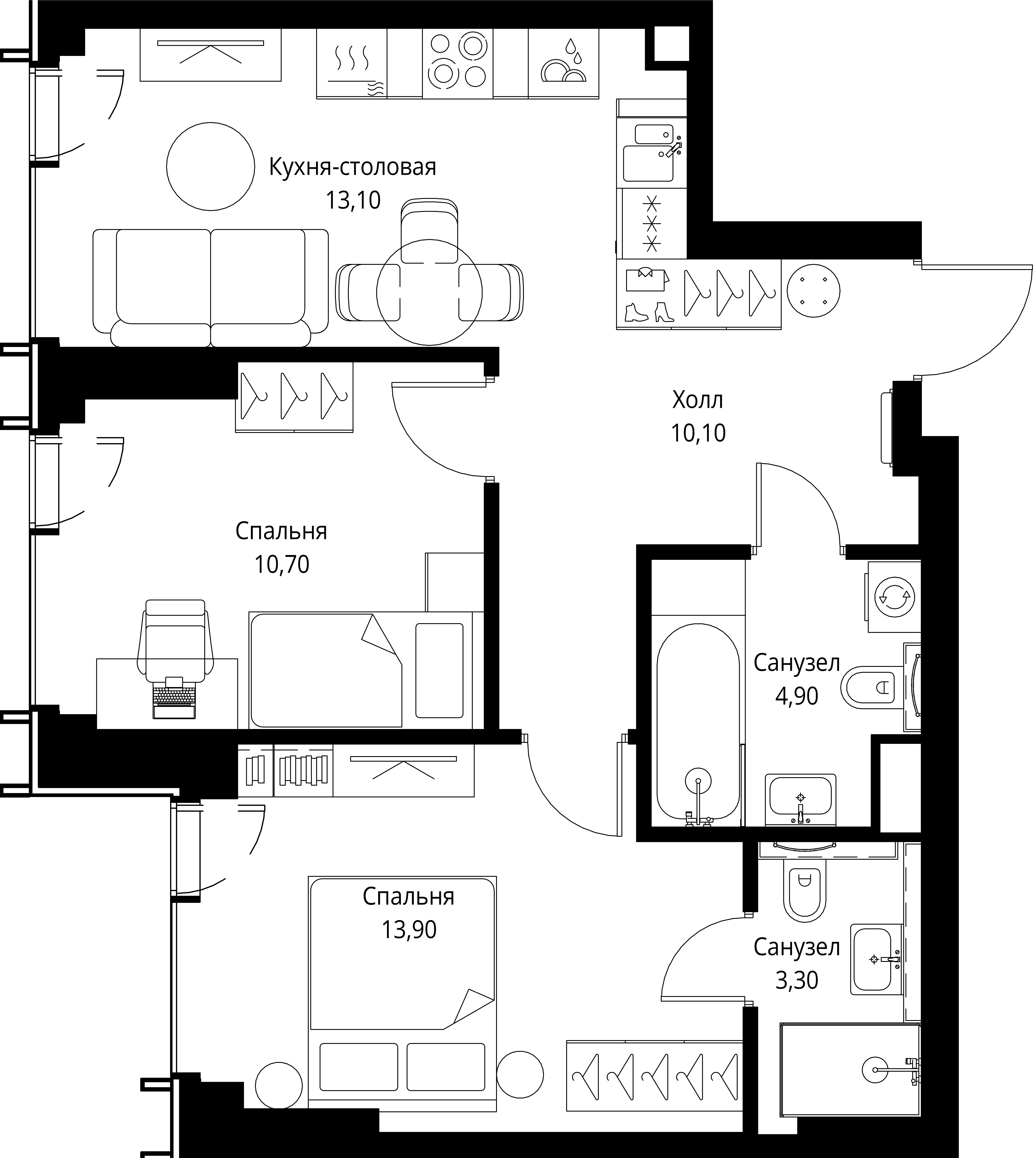 2 спальни