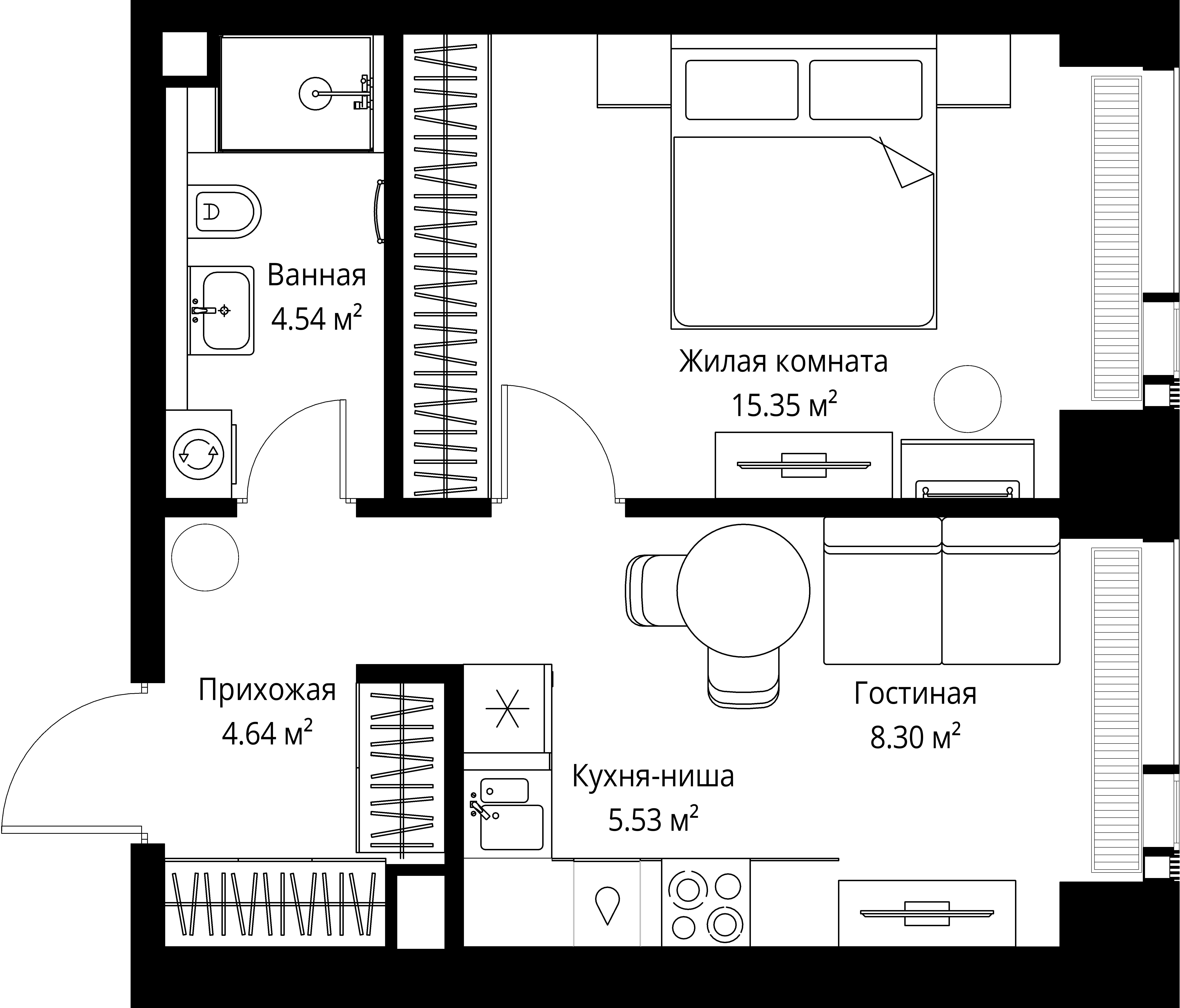 Квартира 38,36 м² - 42 этаж