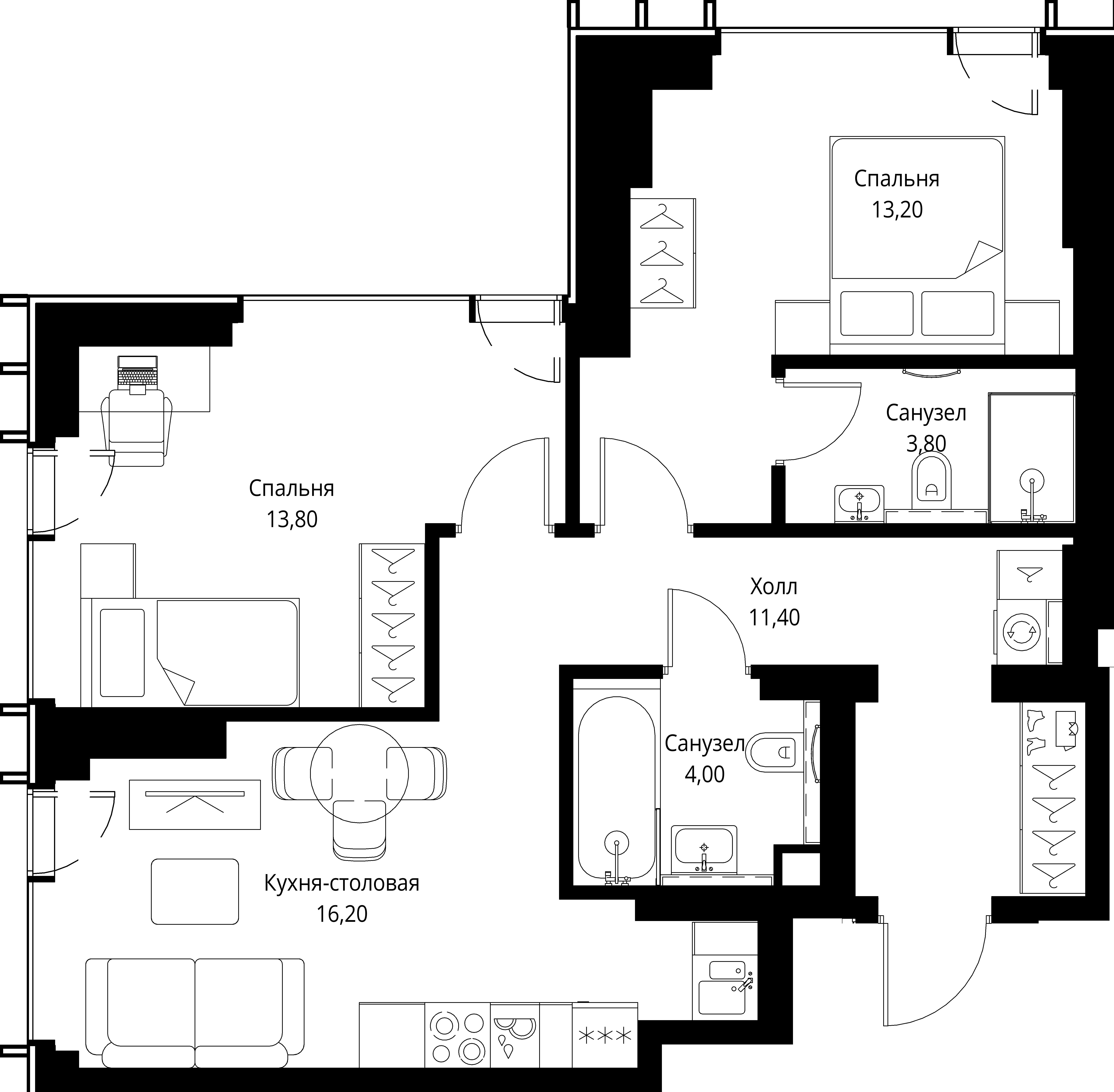 Площадь 55,9 м2