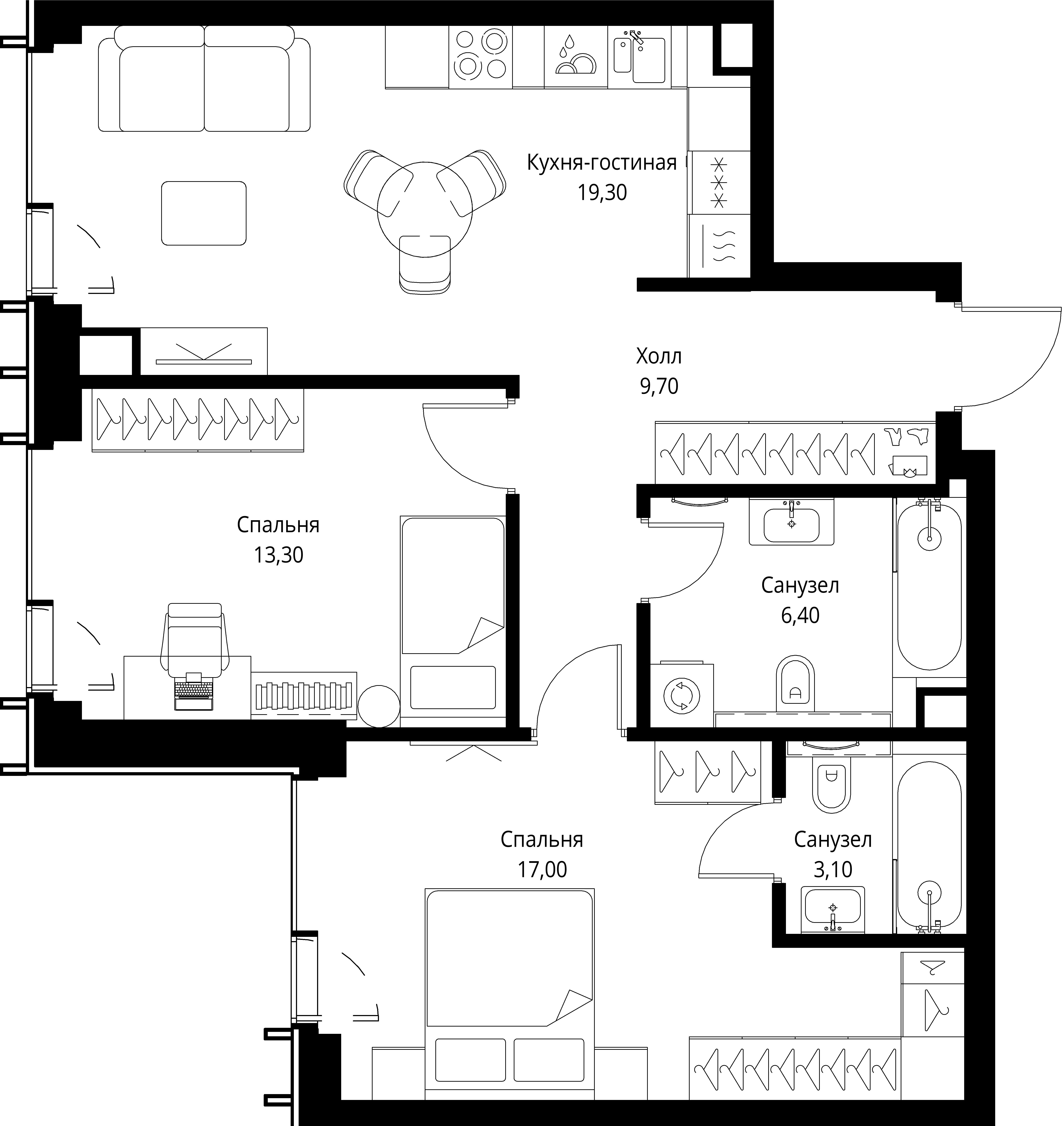 Квартира 70,3 м² - 53 этаж