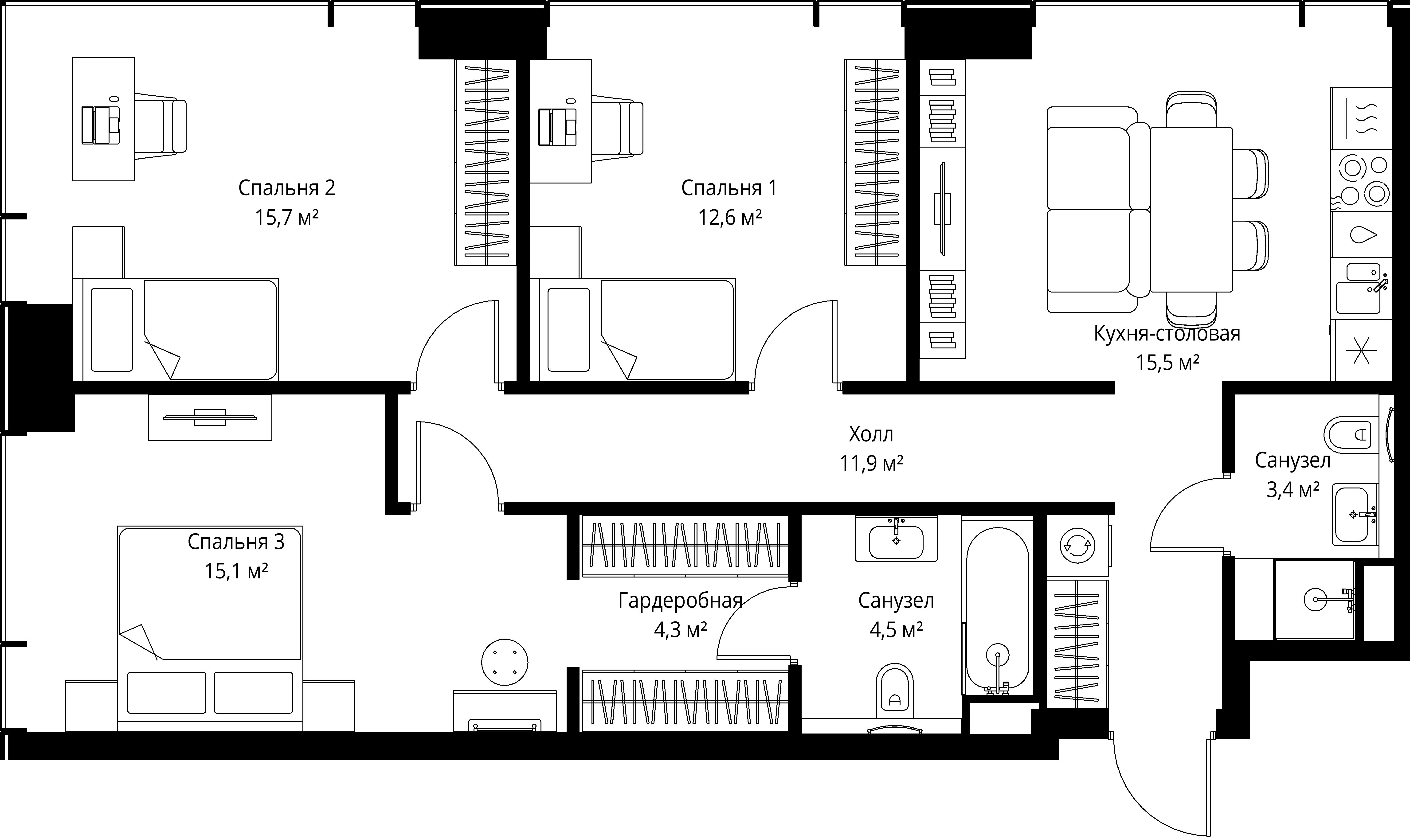3 спальни