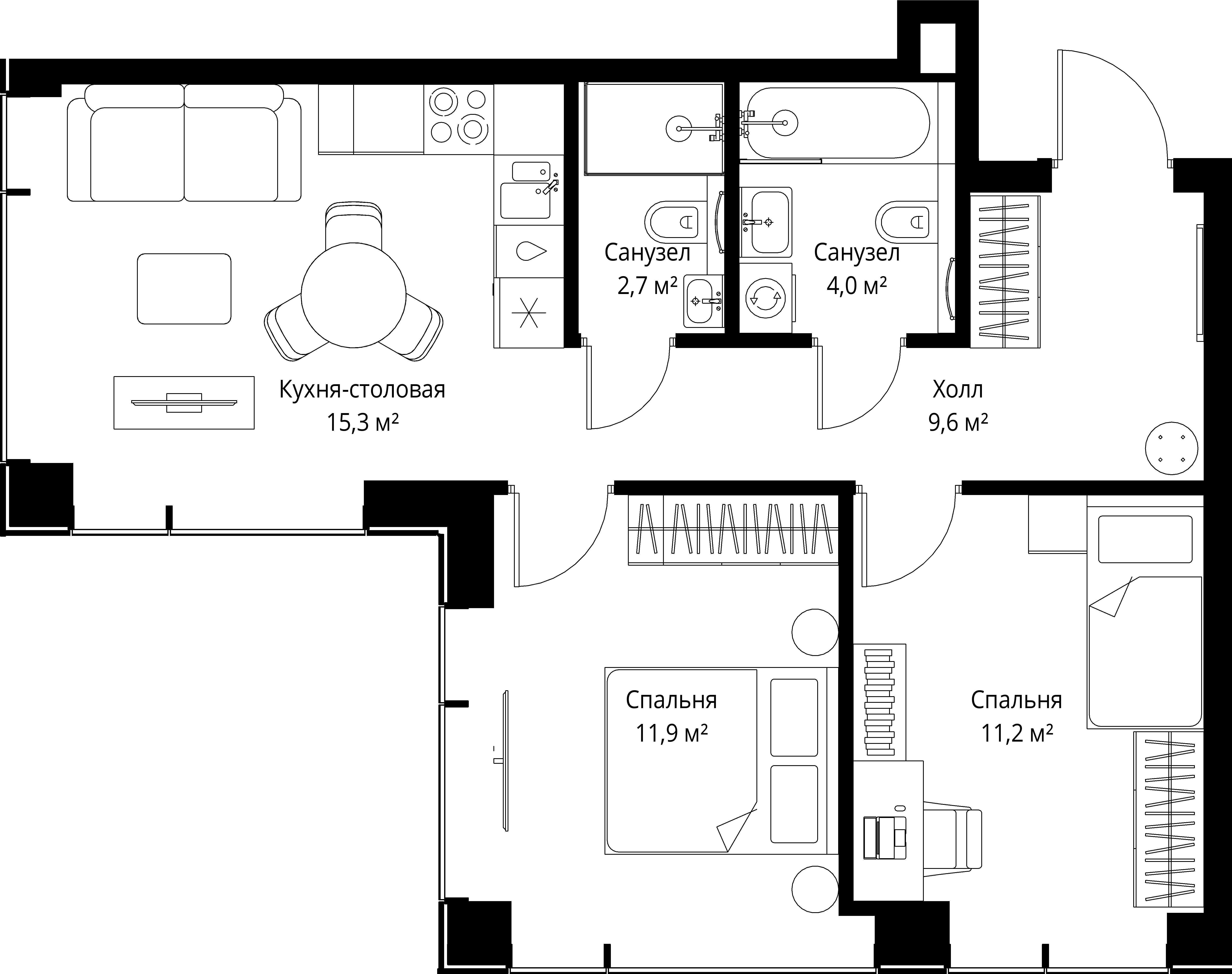 2 спальни