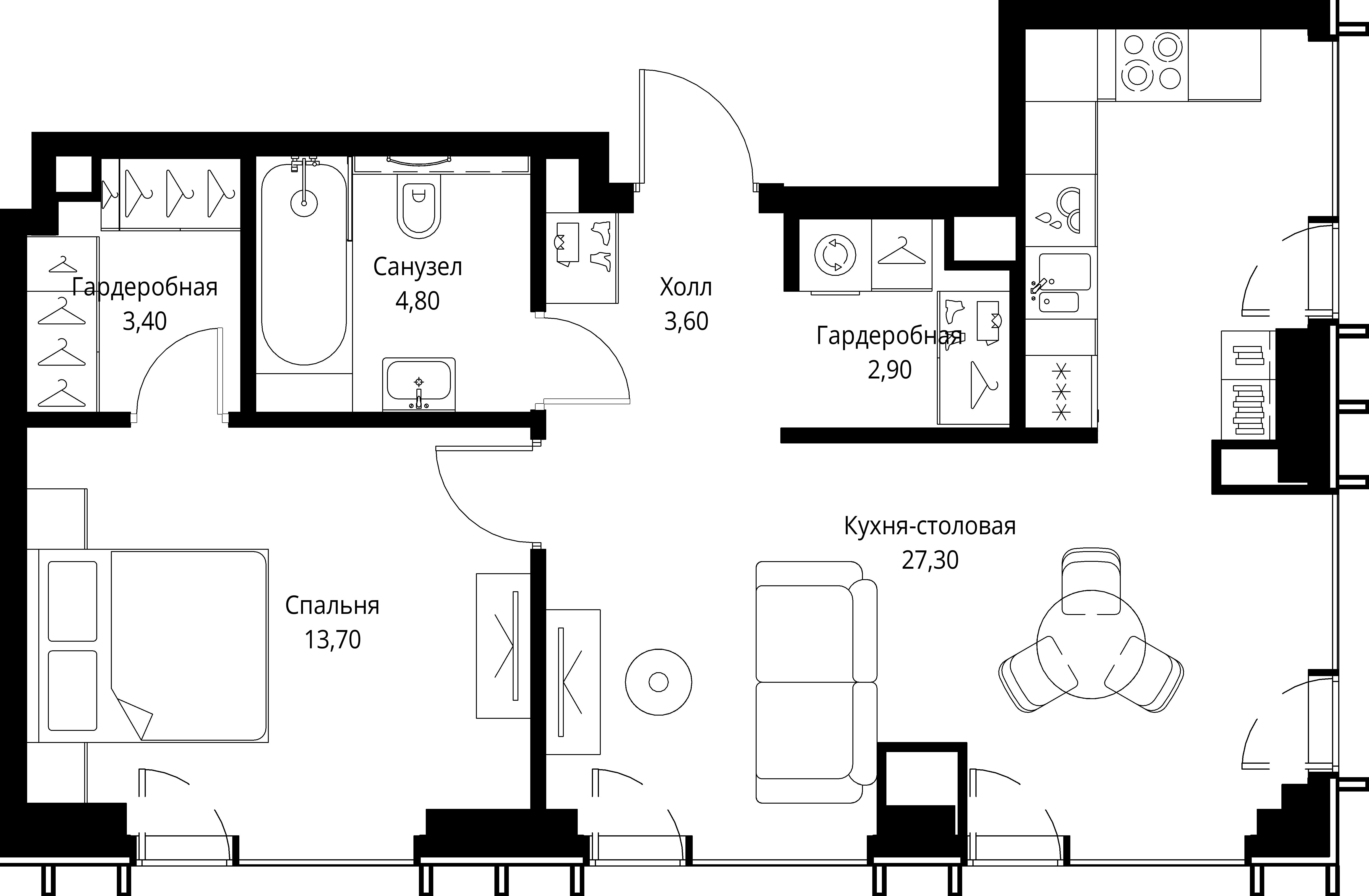 Квартира 55,7 м² - 55 этаж