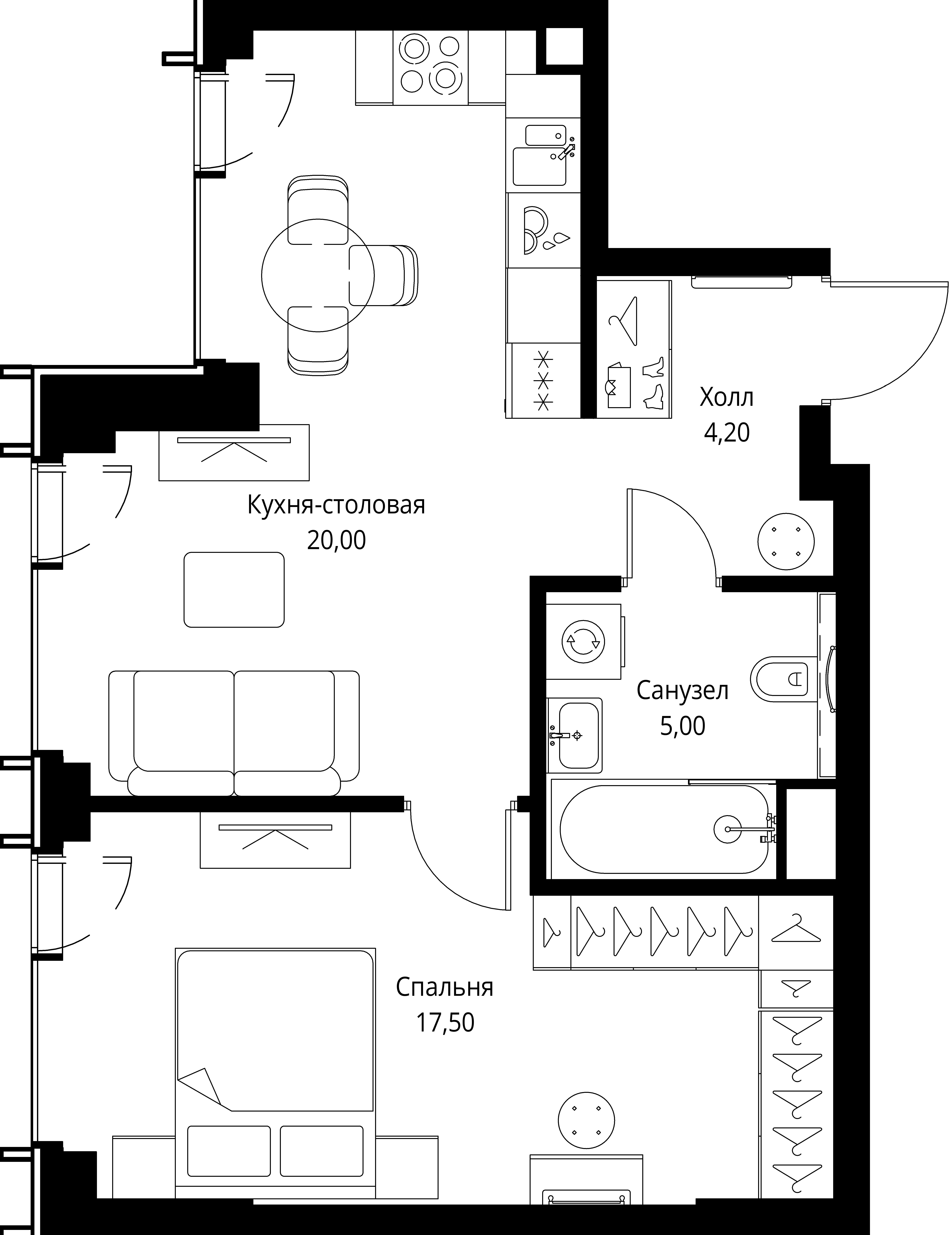 Квартира 46,7 м² - 55 этаж