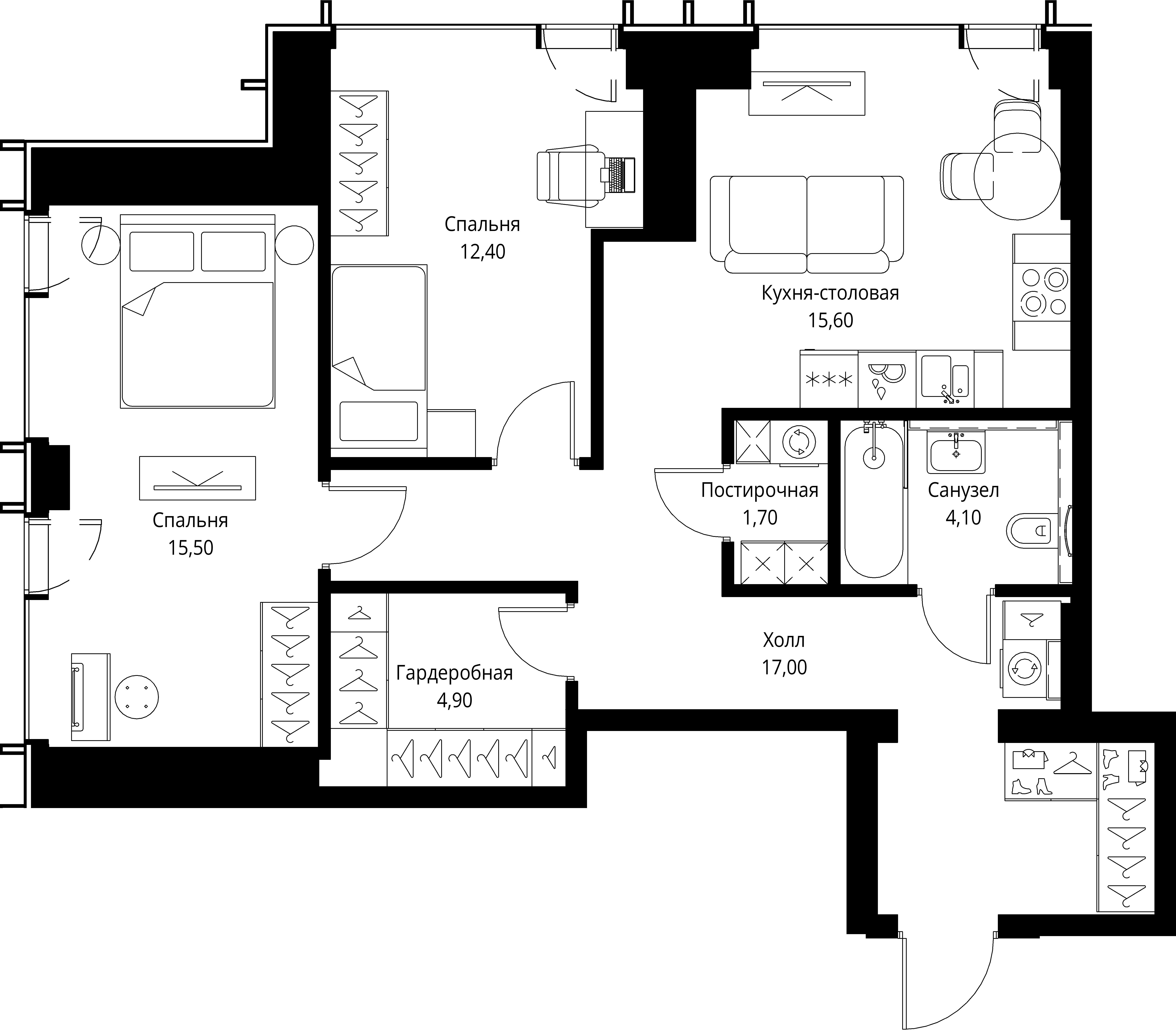 3 спальни