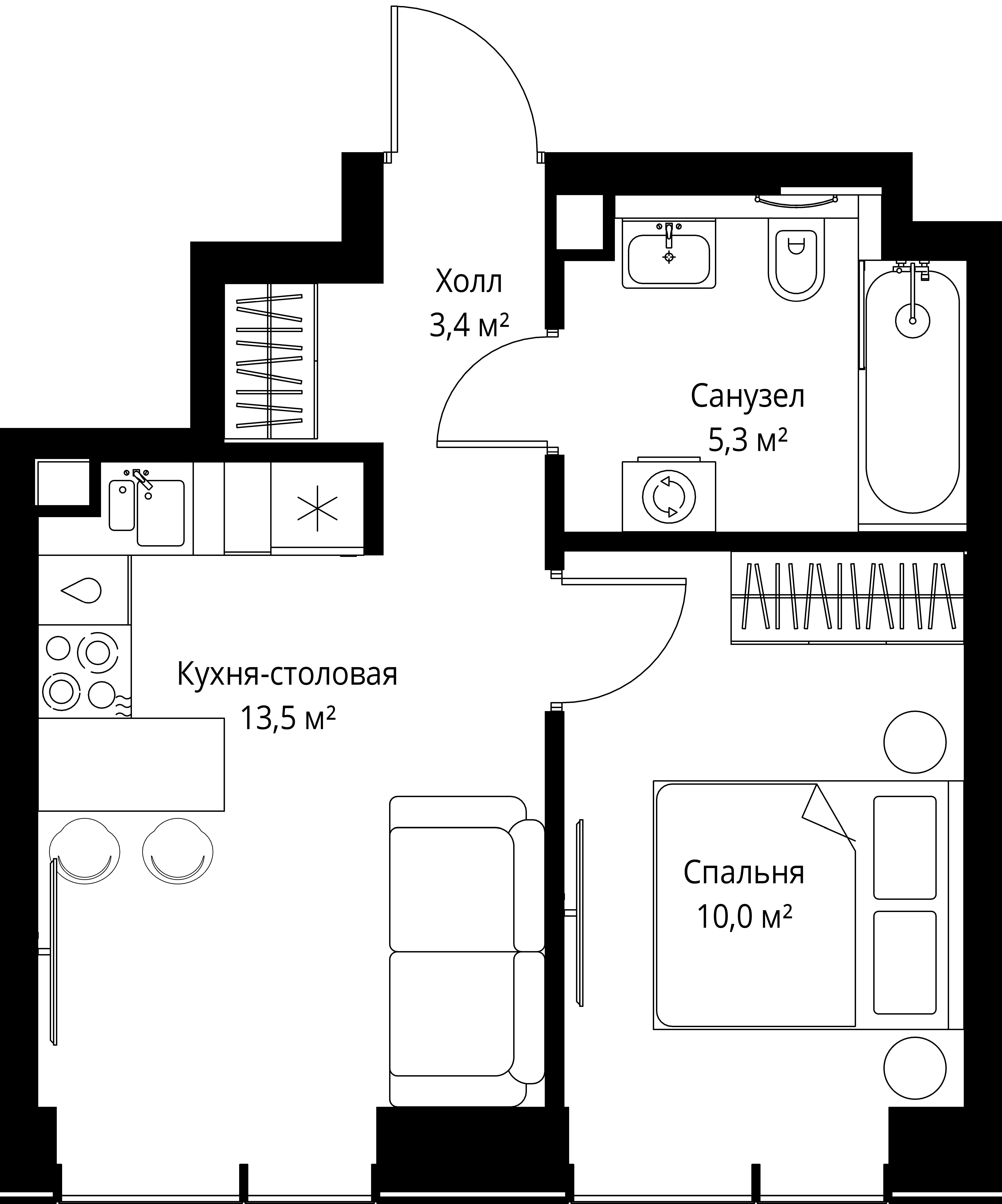 Площадь 34,1 м2